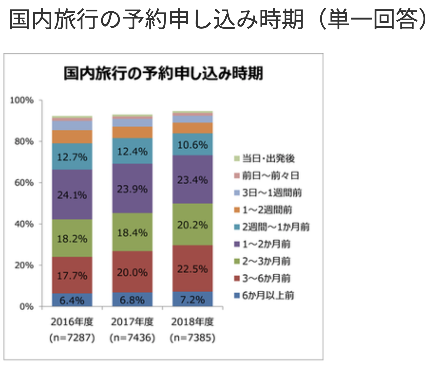 日本人の国内予約者はチェックイン6ヶ月前までに約7.2%が予約します。