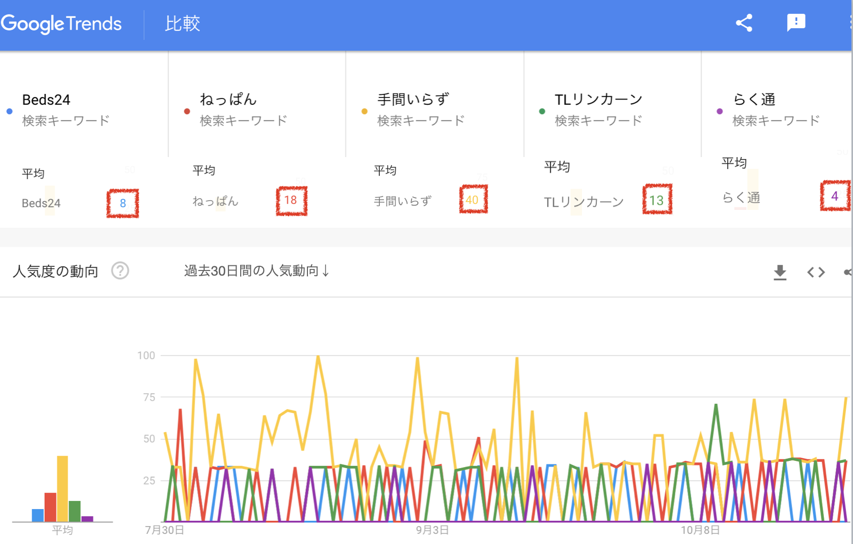 故に、今回、私はグーグルトレンドの検索数でサイトコントローラー各社の検索数によるランキングを客観的に計測しようと考えました。