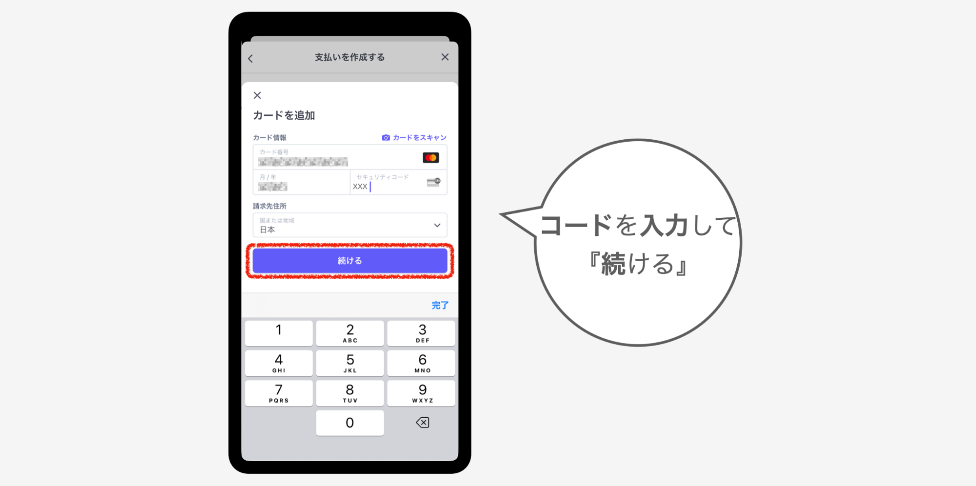 ⑦セキュリティコードを入力し、『続ける』をタップ