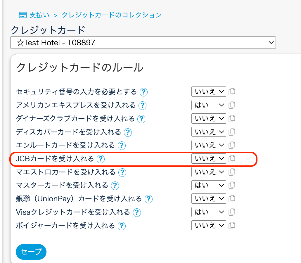※Booking,comでJCBを受け入れる場合、Booking,com管理画面側で設定が必要です。