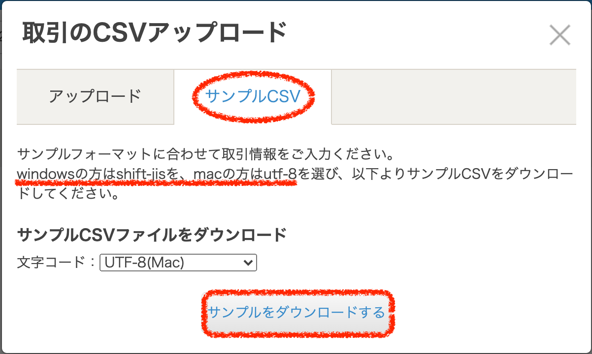 ※文字コードについては、Windowsの場合は「SHIFT-JIS」、Macの場合は「UTF-8」を選択してください。