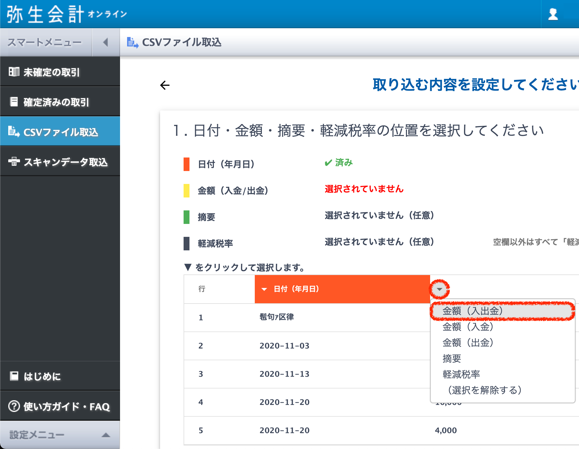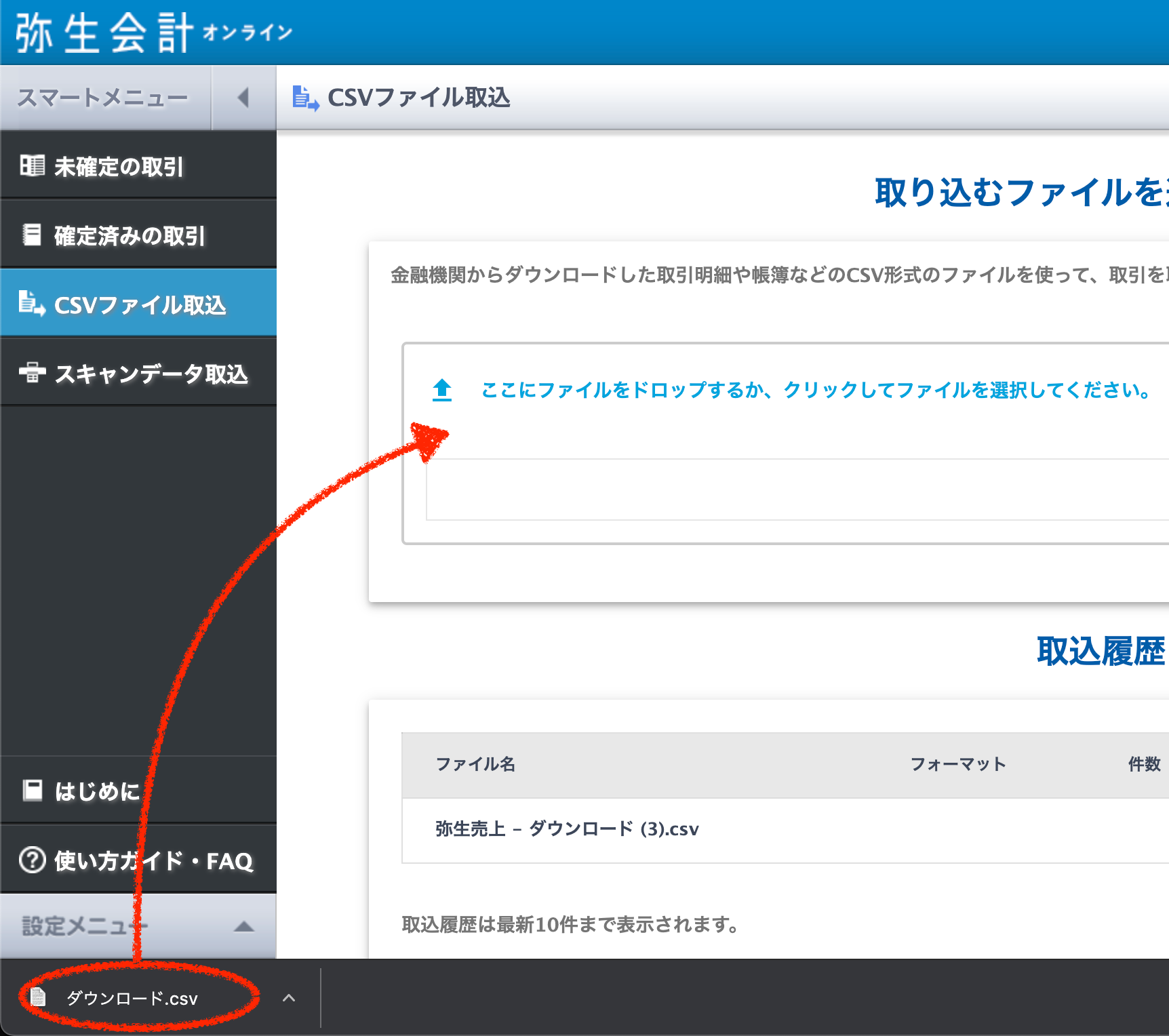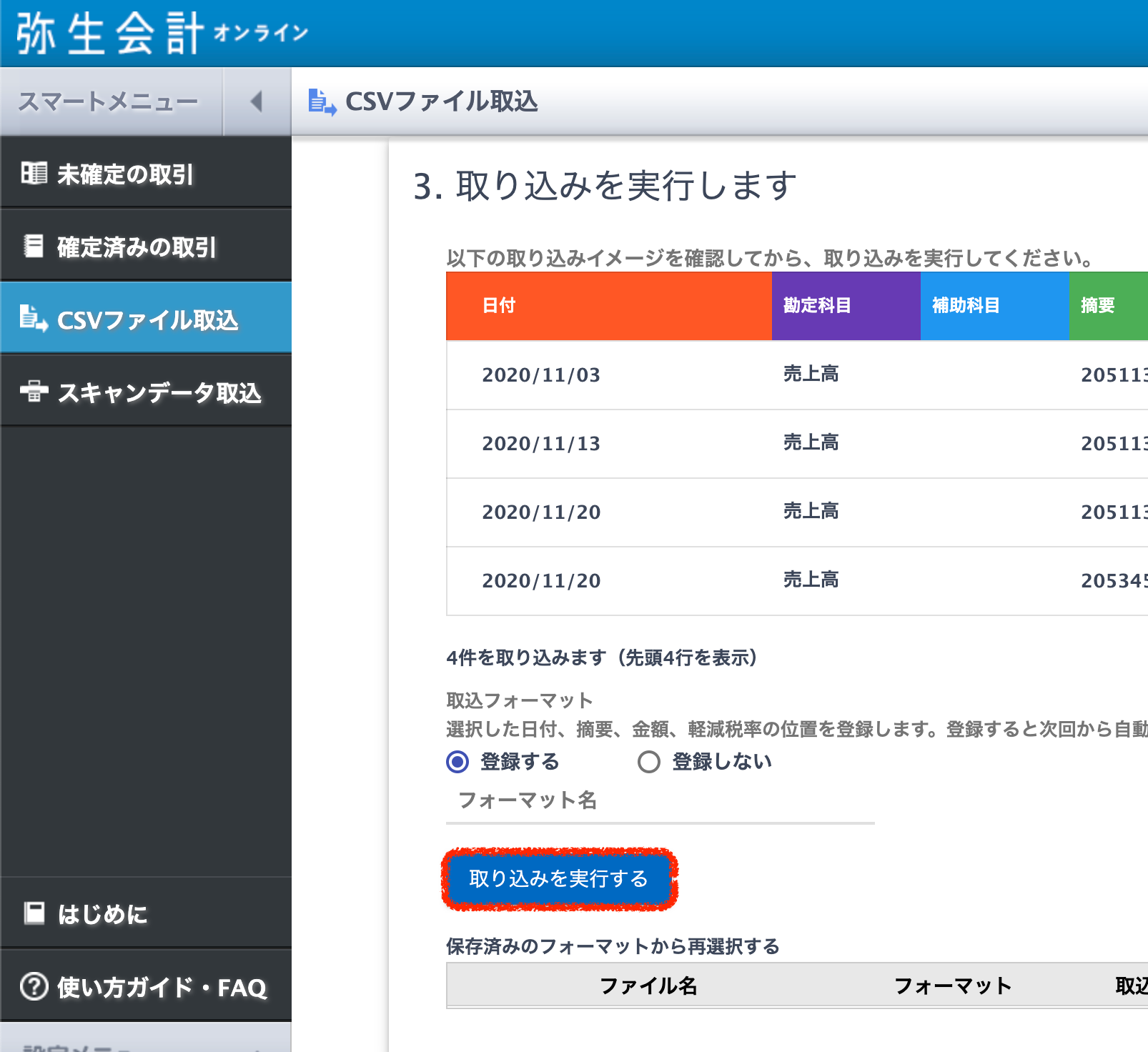 (2)弥生会計オンラインにcsvファイルをアップロード