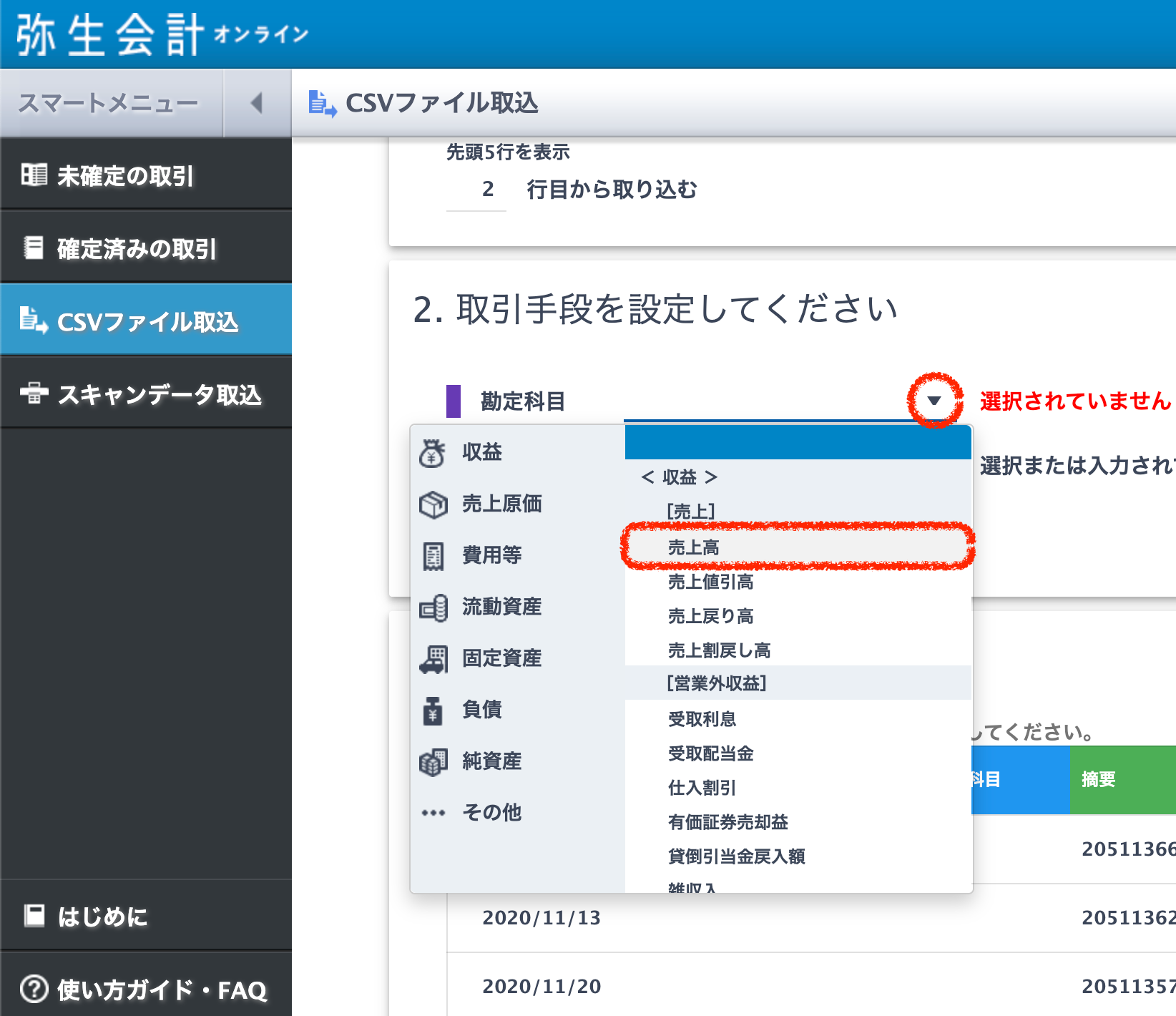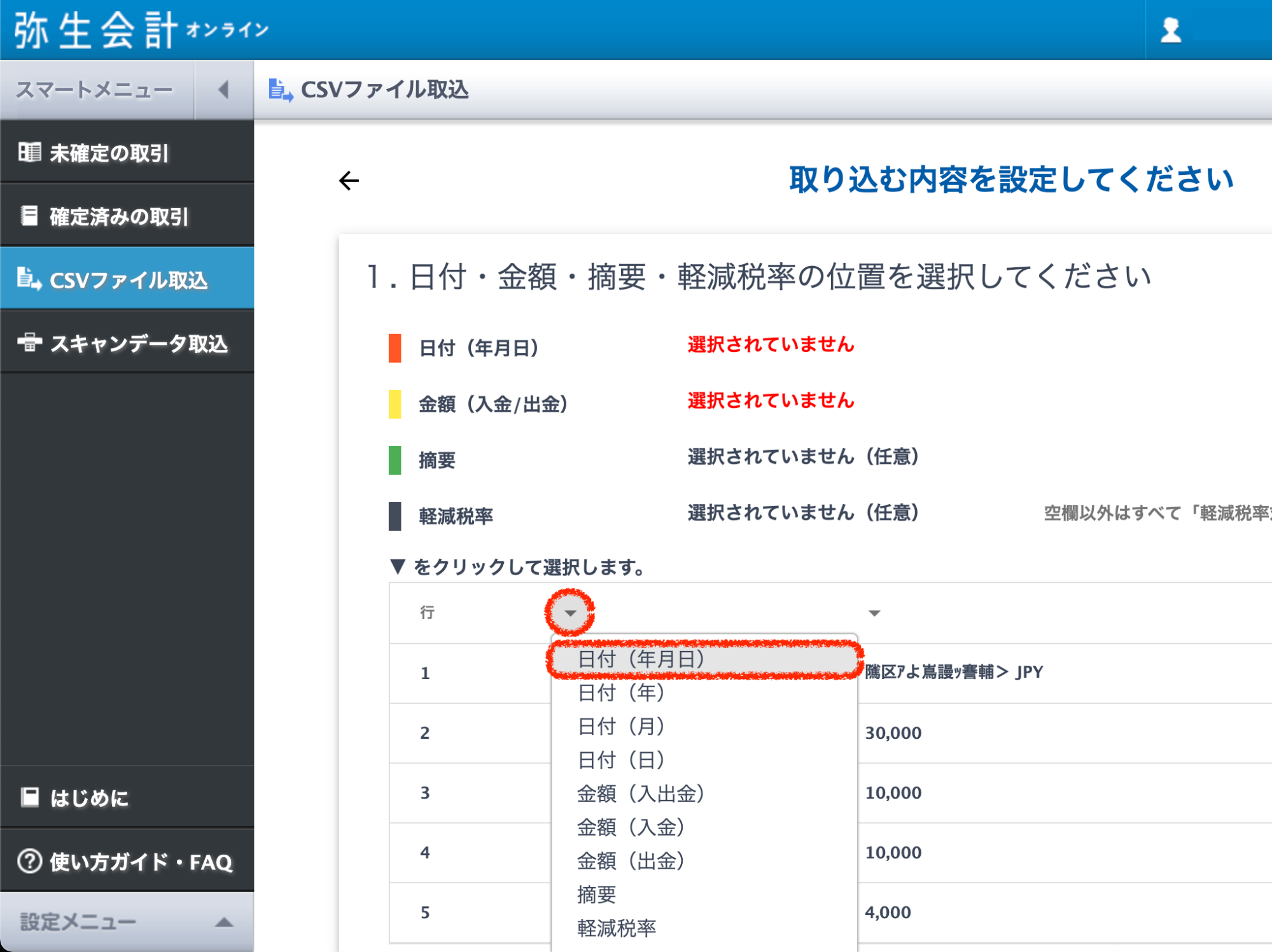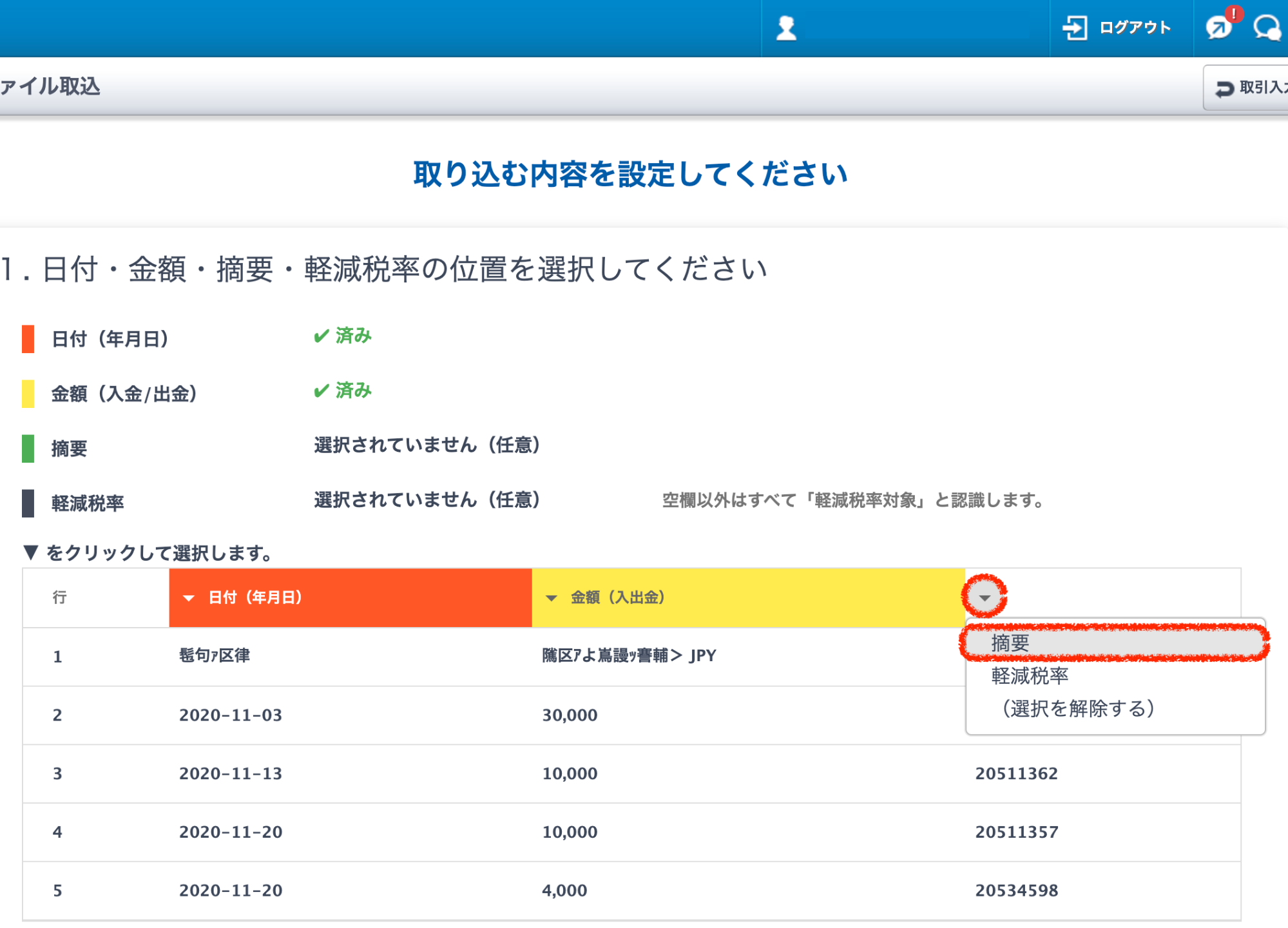 (2)弥生会計オンラインにcsvファイルをアップロード