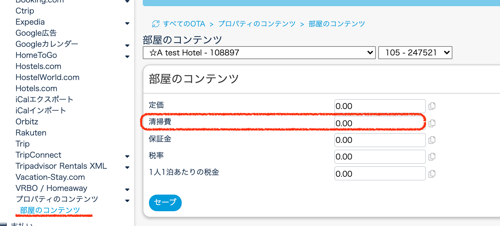 清掃費は、Airbnb、VrboのみBeds24管理画面で設定が可能です。その他OTAの清掃費を設定する方法は各OTAのサポートへお問い合わせください。