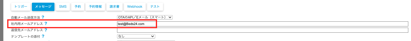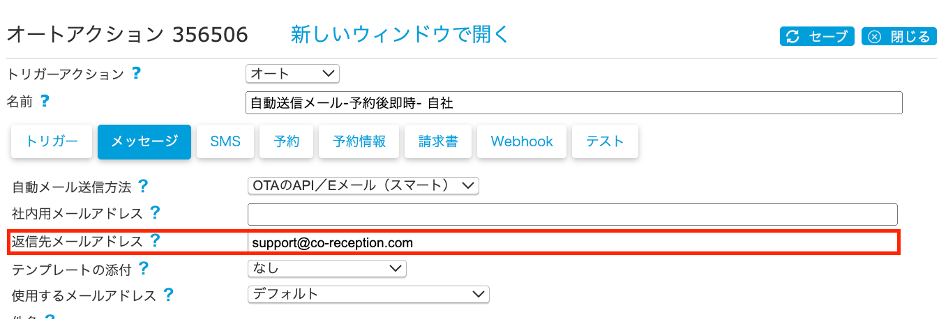 自動送信メールの送信先OTAの変更方法