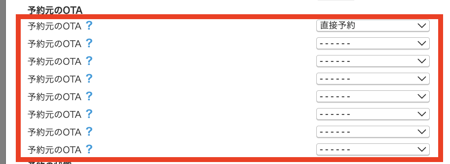 ※ 「直接予約」は、一番上のプルダウンでしか選択できません。