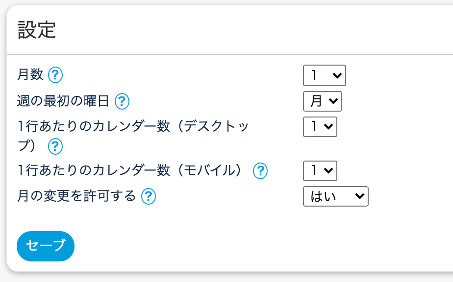1〜12まで選択可能です。1=1ヶ月分。12=12ヶ月分のカレンダーが表示されます。