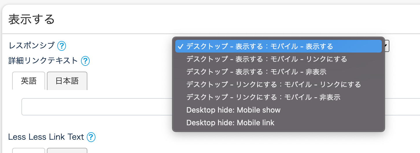 ※弊社では「デスクトップ – 表示する:モバイル – 表示する」の選択を推奨しております。