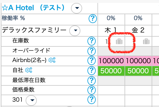 ・旧カレンダー:カレンダーの在庫数の横、「カバンマーク」から
