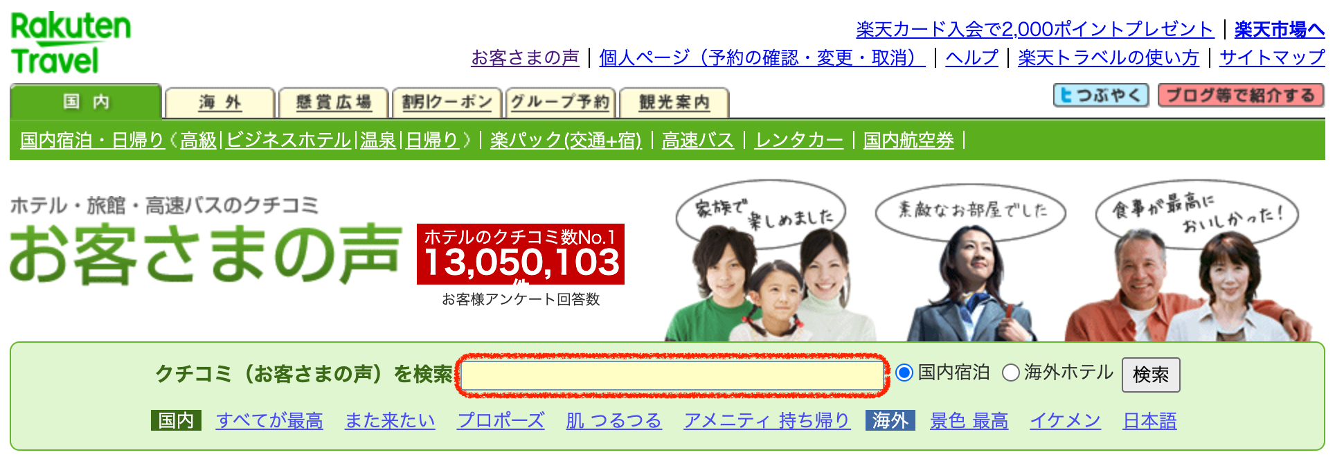 ぜひ、楽天トラベルなどで、他の意見(クチコミ)も探してみてください。