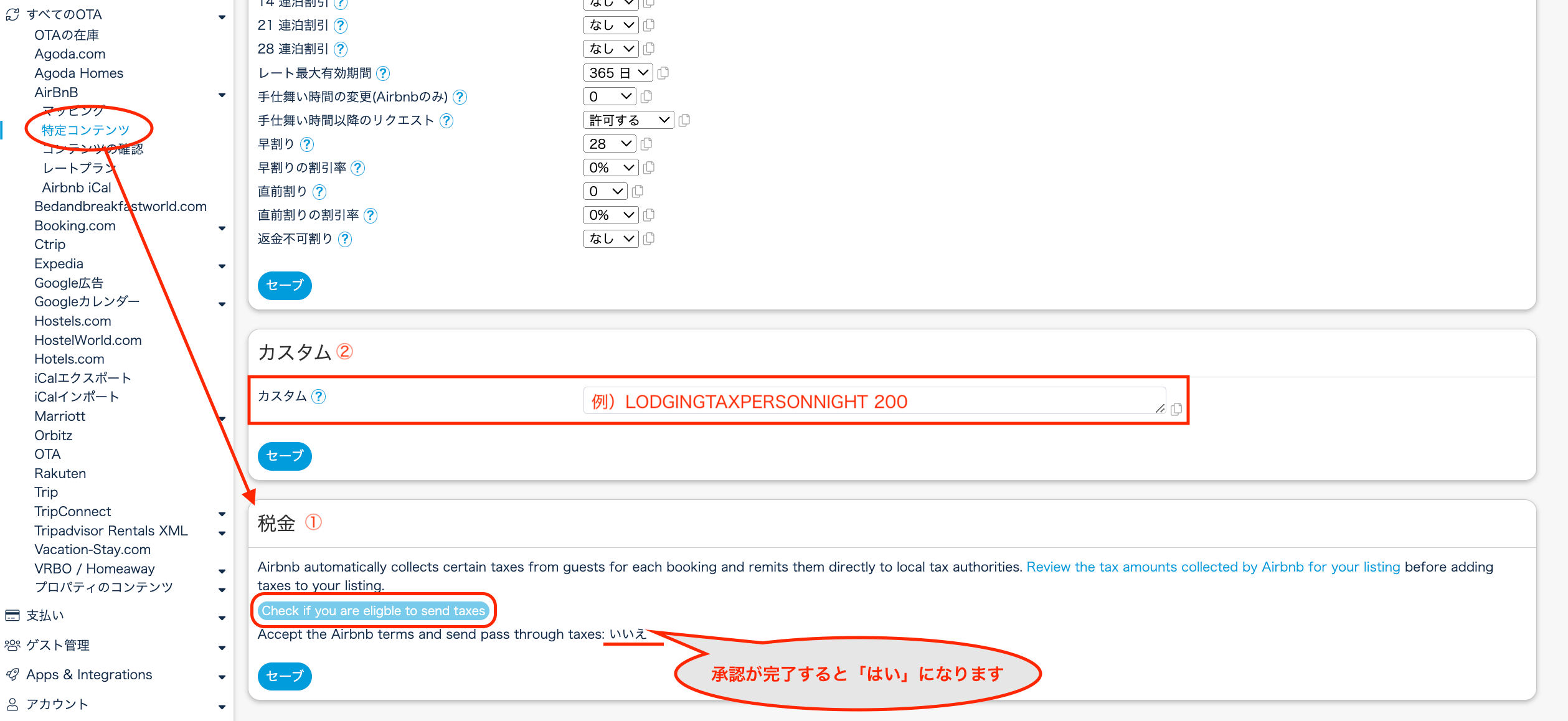 これは、Beds24でリスティングの税金を設定をするにあたっての承認作業です。
