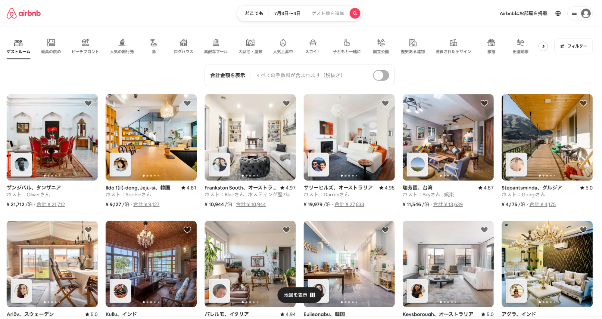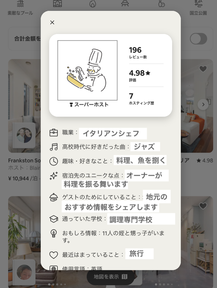 ゲストは検索画面でホストについて知ることができます。