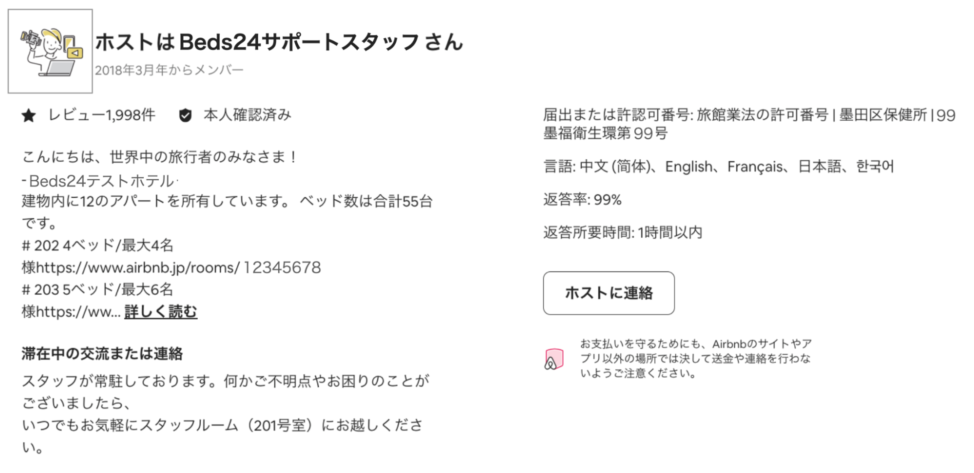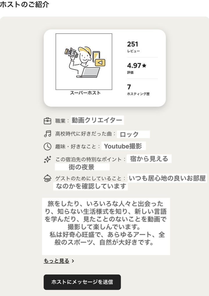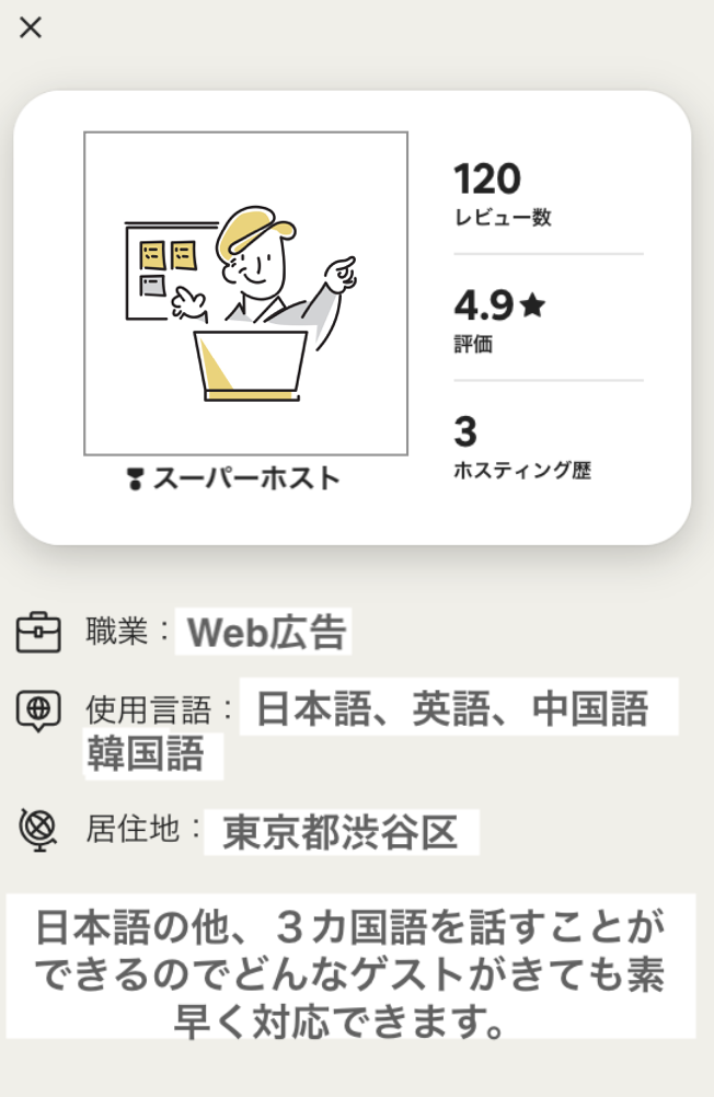 ホストの詳細が分かると、ゲストは安心して宿泊できますよね。