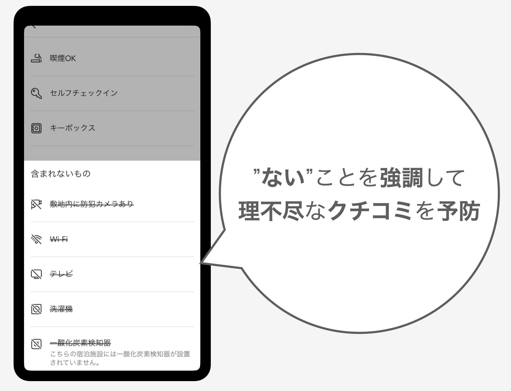 「まさか〇〇がないとは思わなかった」のようなクチコミを書かれる前に、