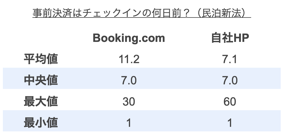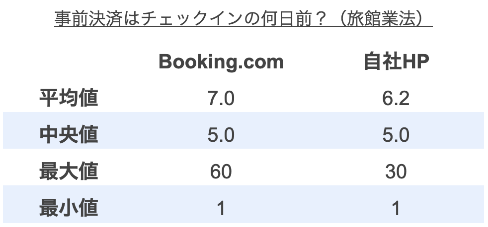 調査対象は、Booking.com及び自社HP向けの、自動集金の設定内容です。