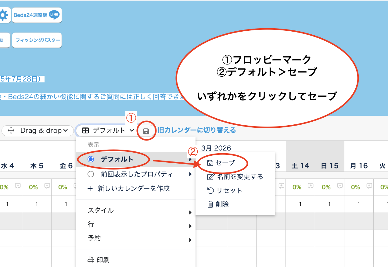 ②ご希望の設定後、セーブ(フロッピーボタン)を押してください。