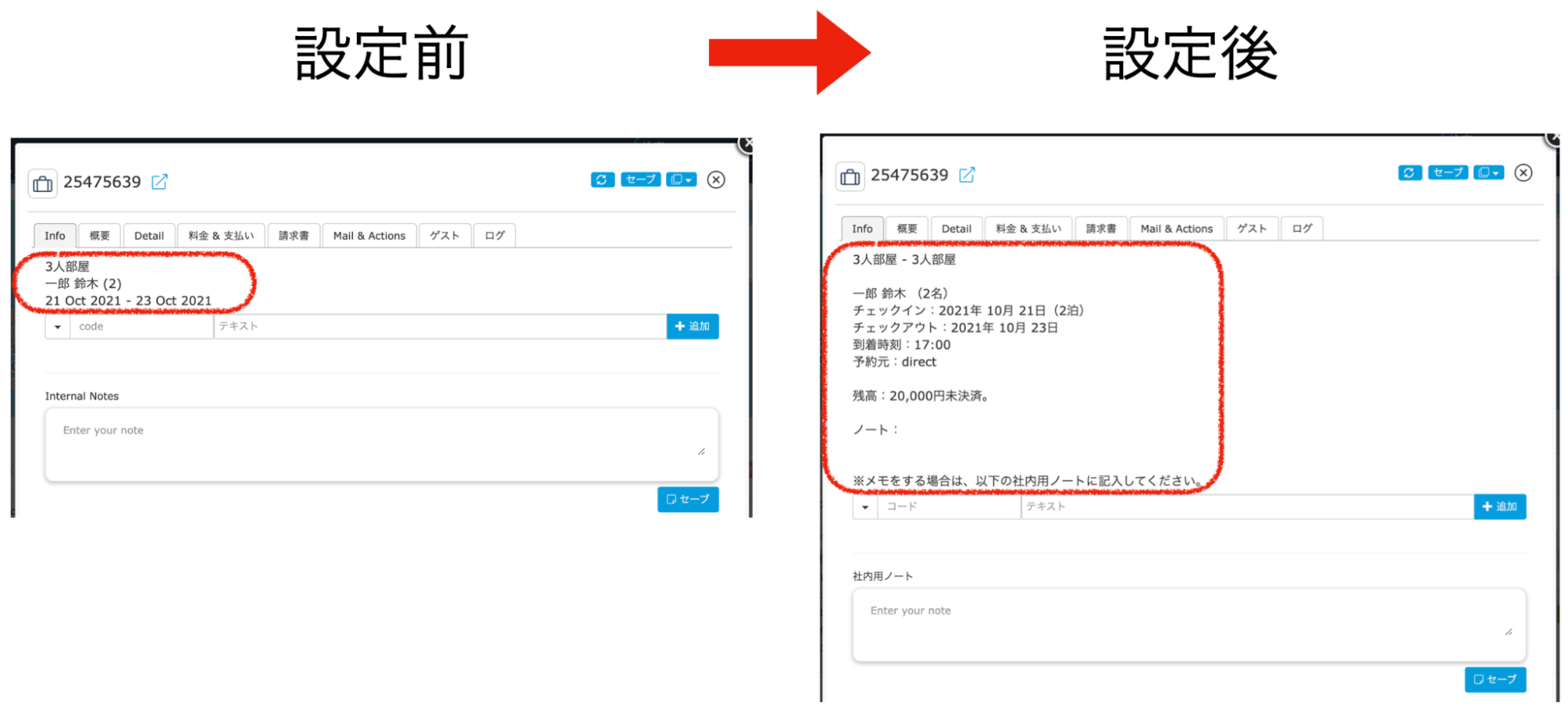 予約のInfoタブを見れば、情報が一目で確認できるようになります。
