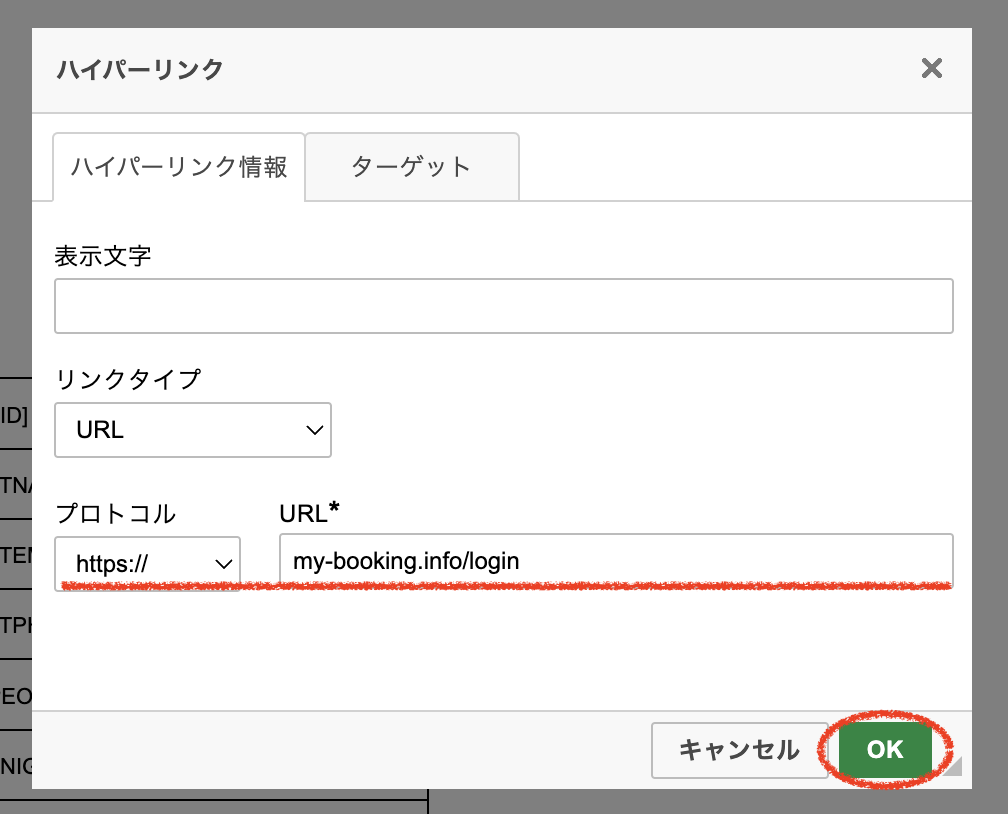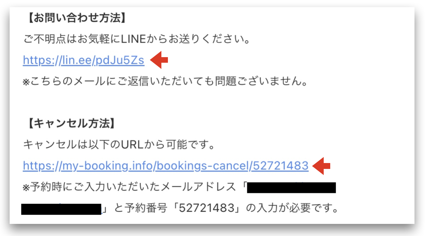 ※画像はキャンセル用のURL「https://my-booking.info/login」を挿入