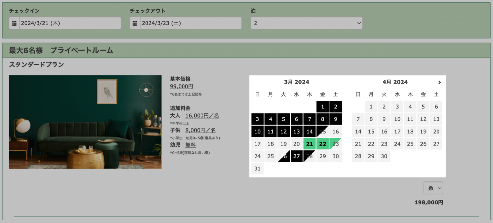 空室カレンダーのインとアウトのデザインを、以下のように変更できます。