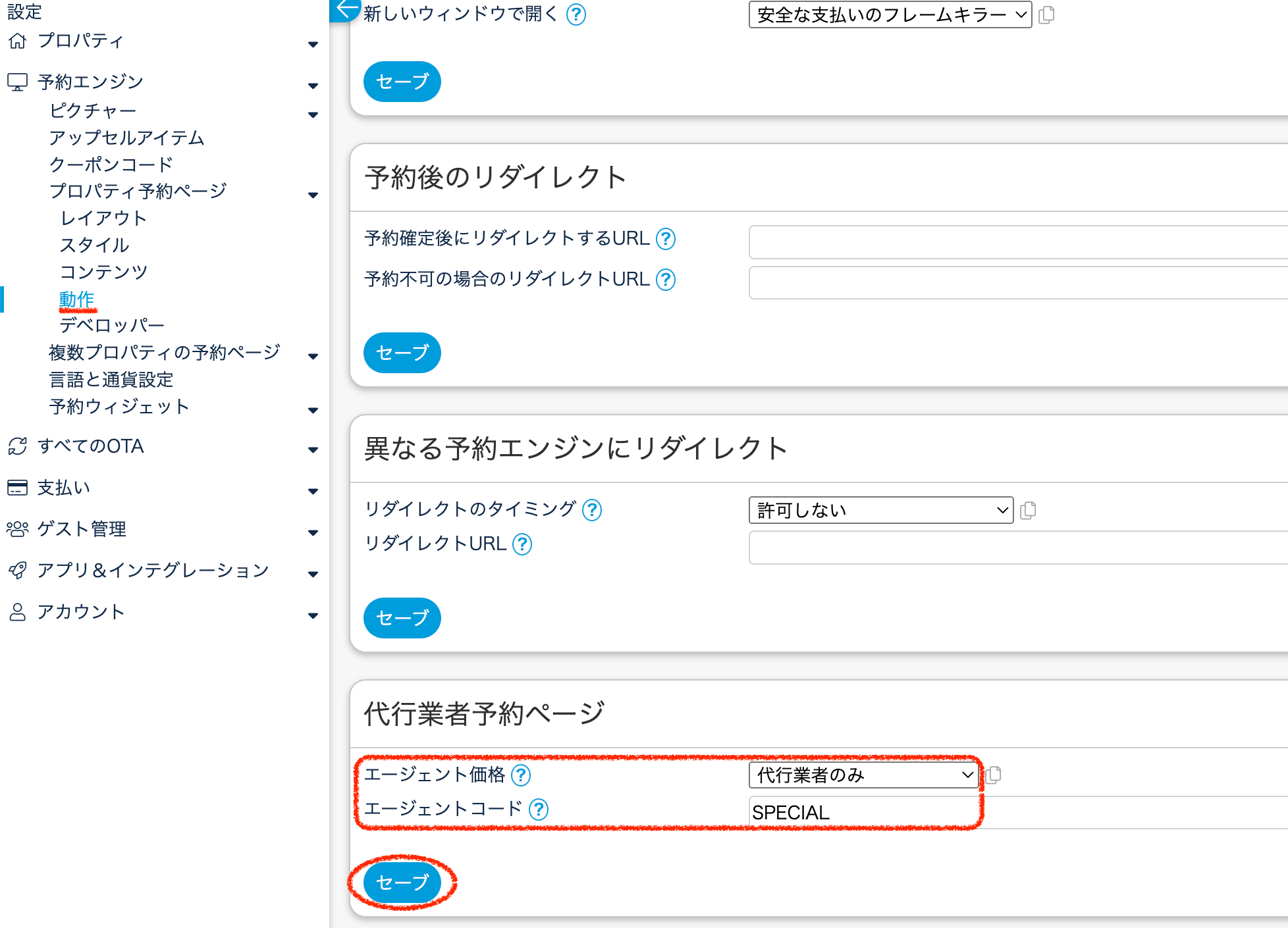 ⑥『beds24.com – 代行業者』だけにチェックをしてセーブ。
