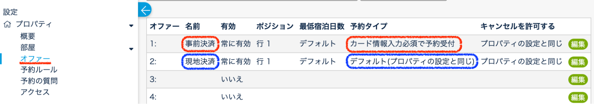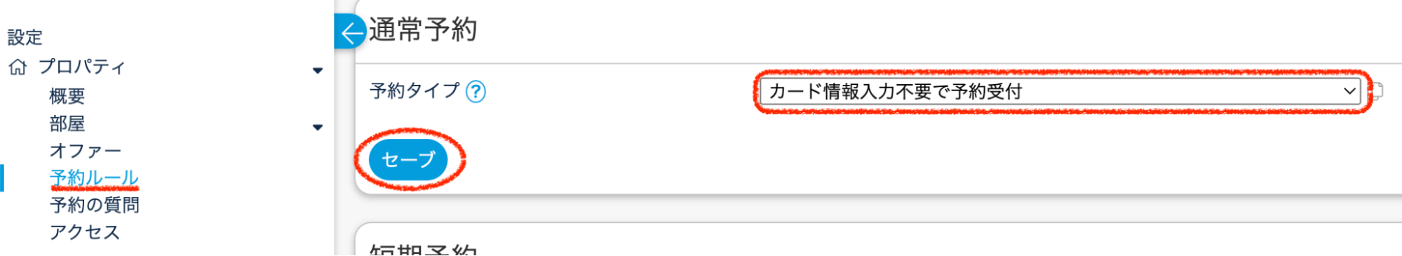 ①プロパティ > 予約ルールで『カード情報入力不要』に設定