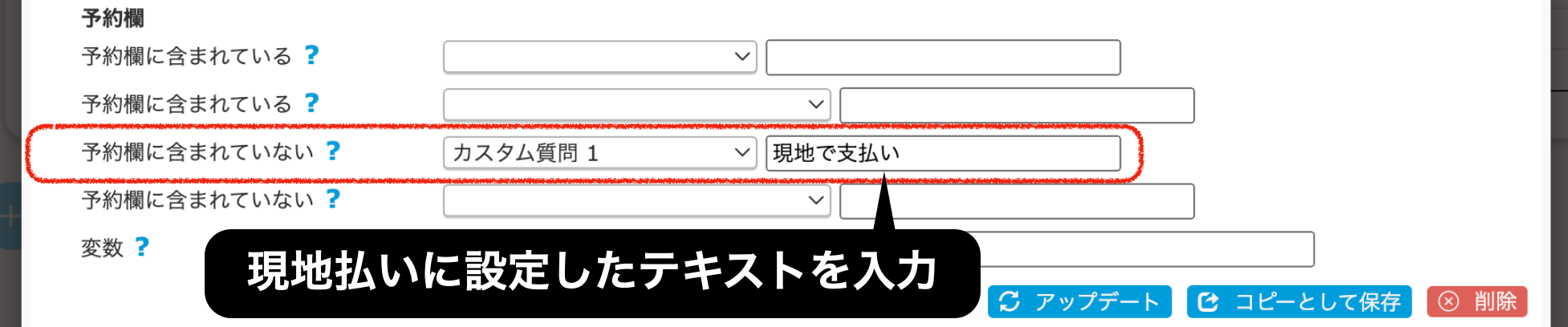 ②自動集金のオートアクションから現地決済の予約を除外
