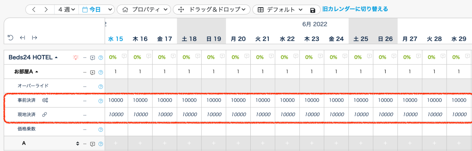 ④カレンダーに料金を入力、または価格のリンク(詳細)を設定