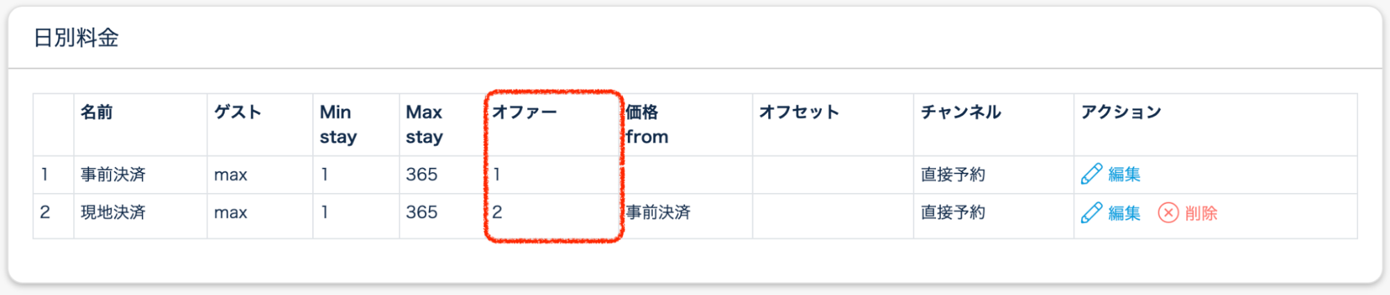 それぞれのオファーに紐付け