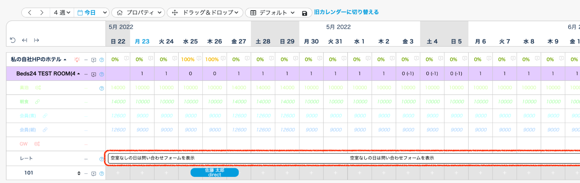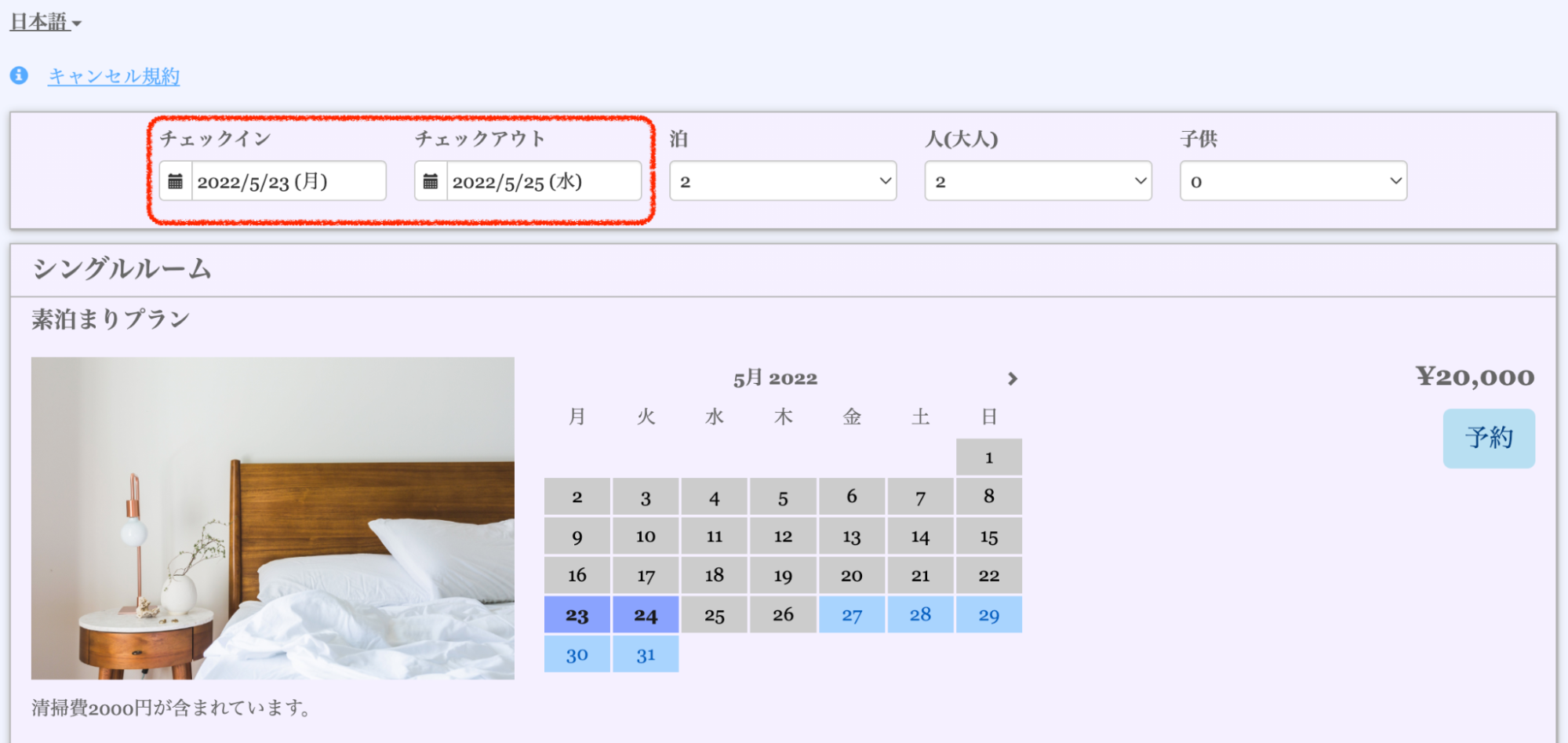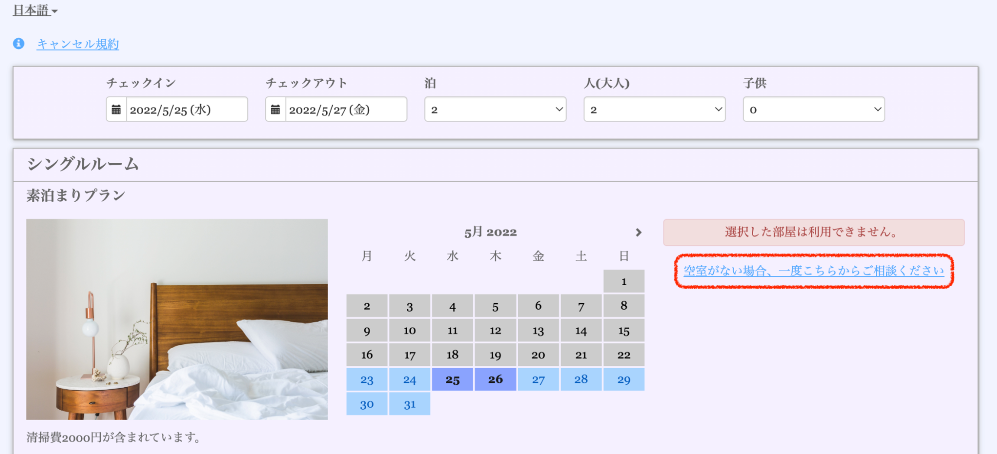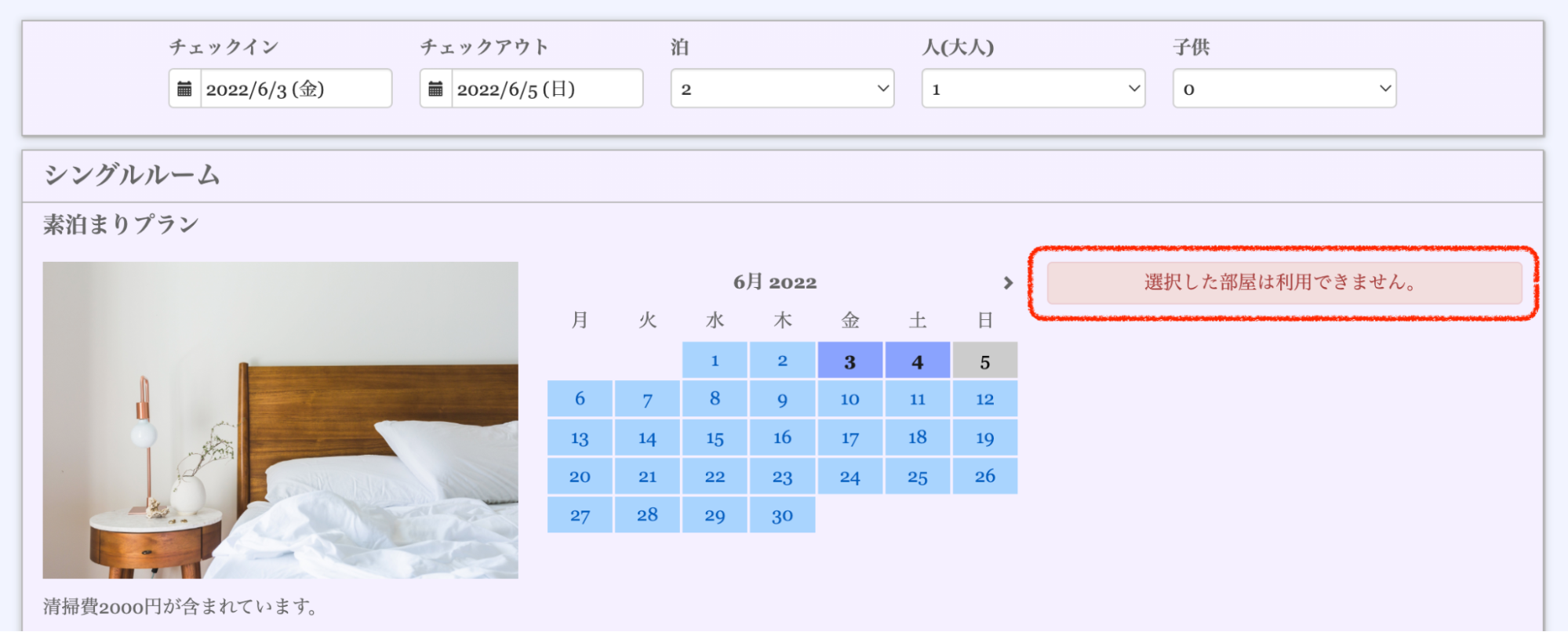 上記の箇所で、ゲストが空室なしの日付を指定した場合に、