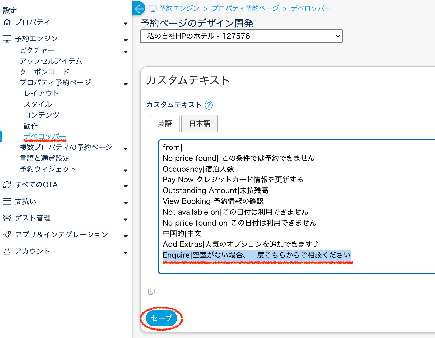 予約エンジン > プロパティ予約ページ > デベロッパー