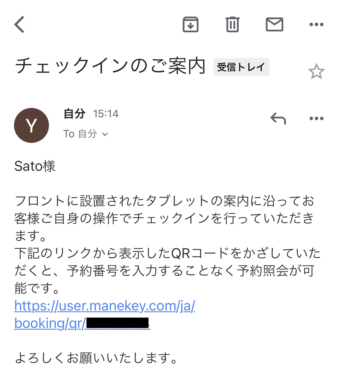 ゲストにQRコードのリンクを自動で共有することができます。