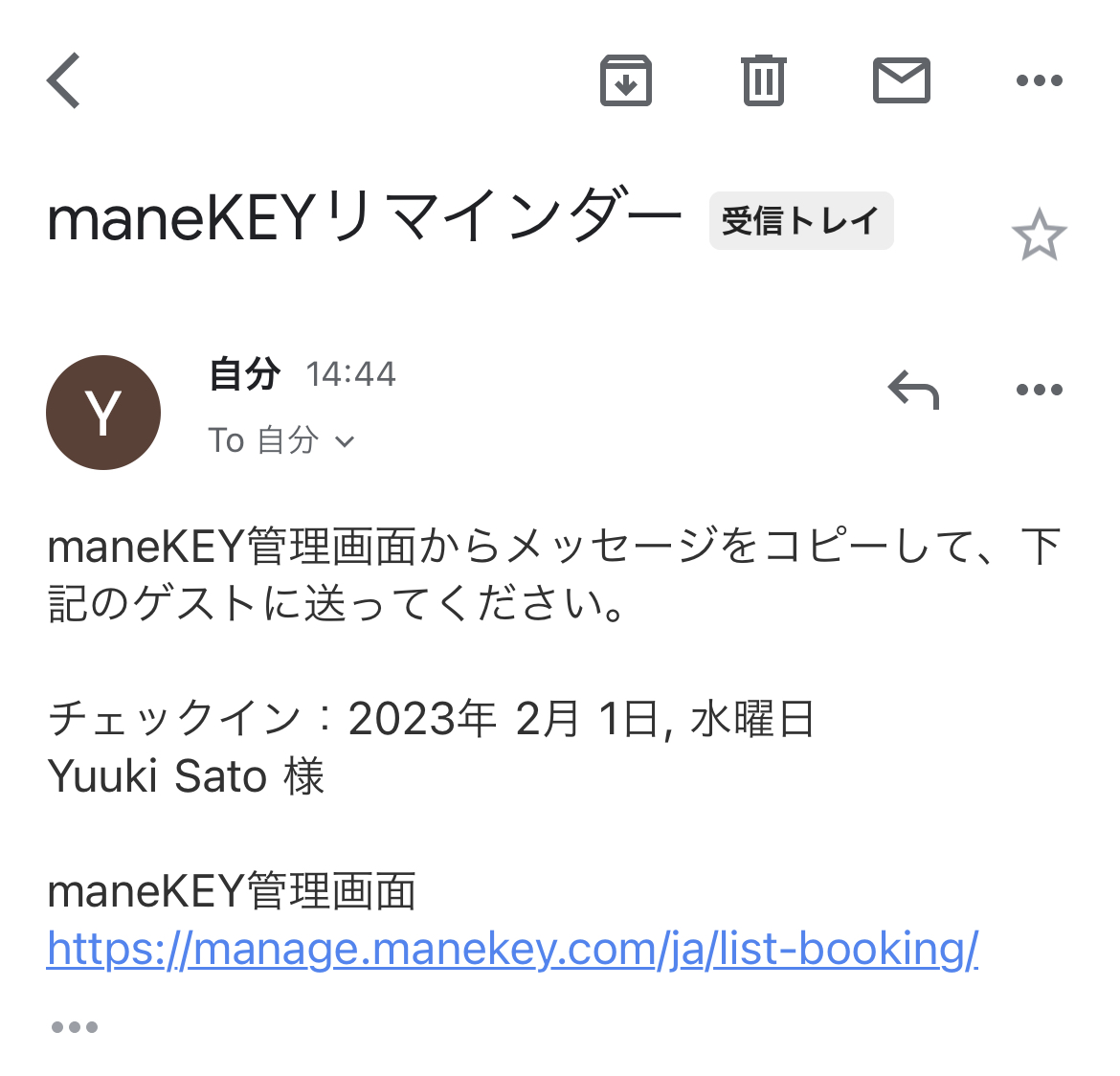 上記2つのリンクを含むメッセージは、maneKEY上で自動生成されます。