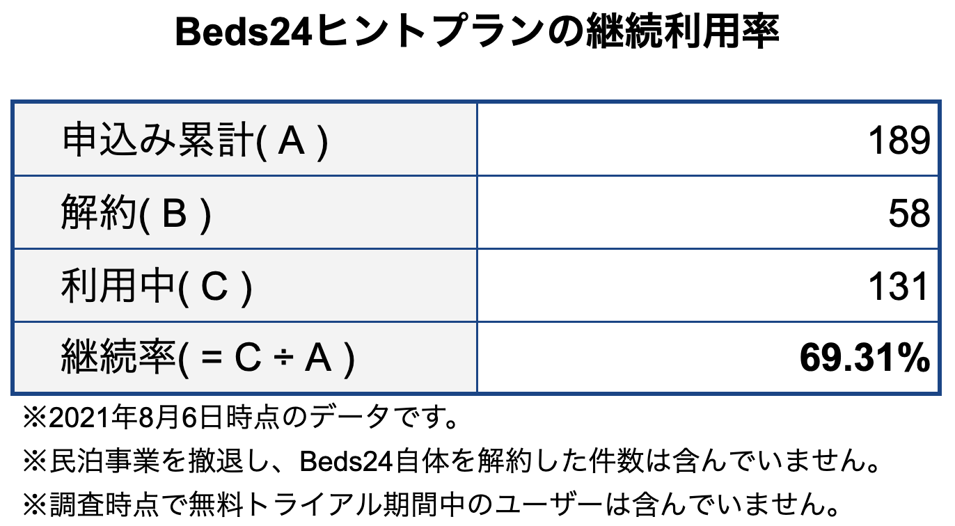Beds24ダイナミックプライシング「ヒントプラン」の継続利用率