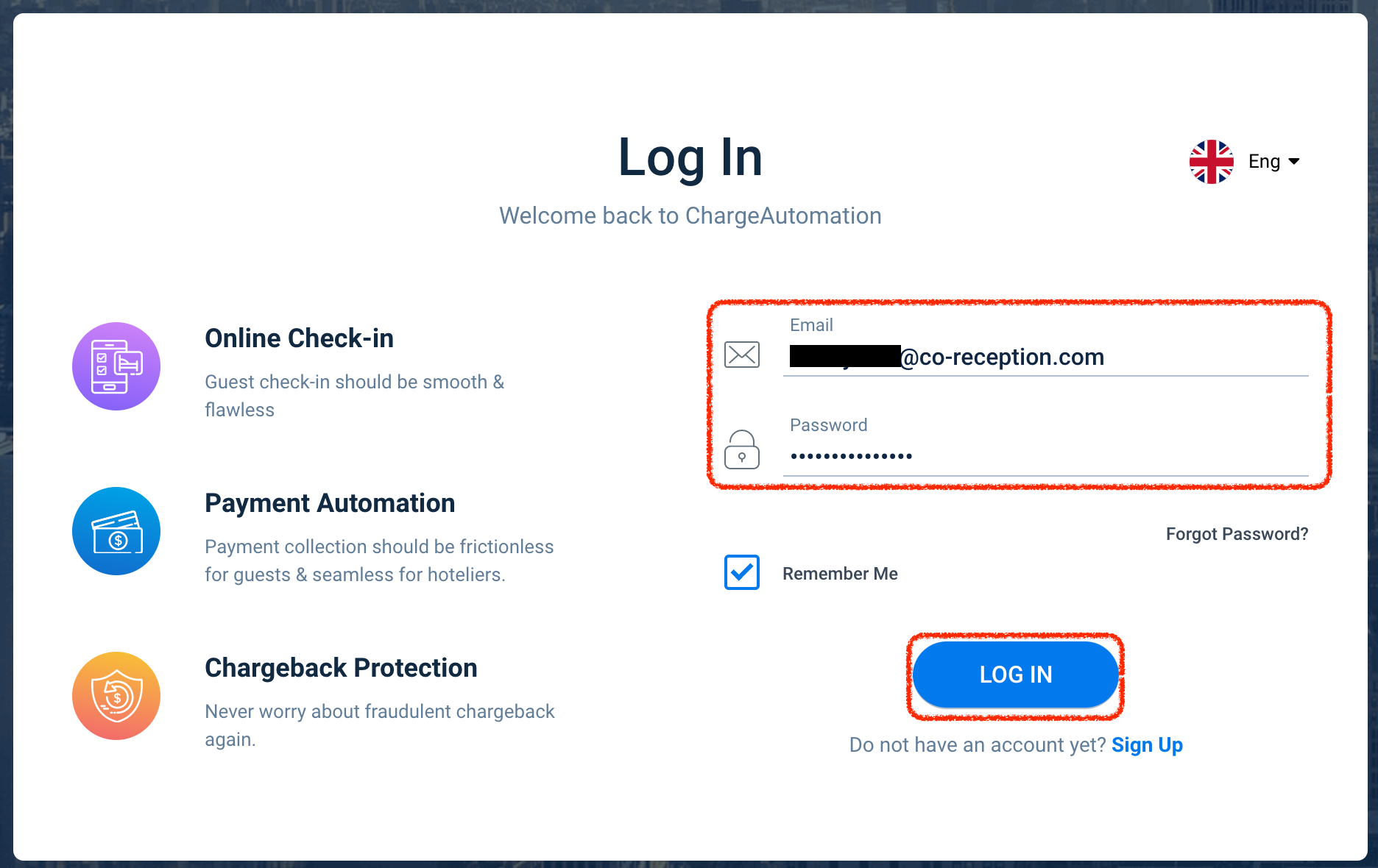 8.ChargeAutomationのSettings > Account Setup > 4.Online Check-inを開きます。
