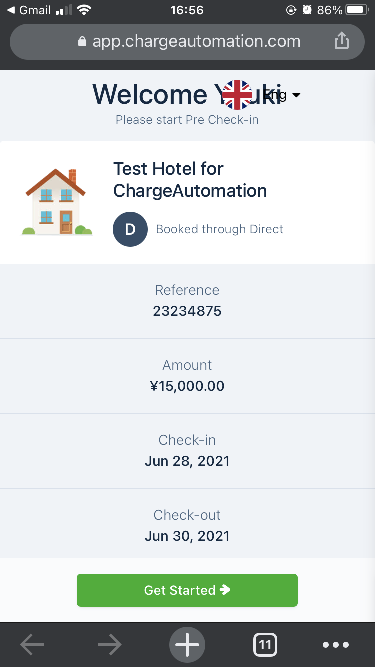 1.Beds24に予約が入って数分後、ChargeAutomationにも予約が取り込まれ、ホストに通知が届きます。