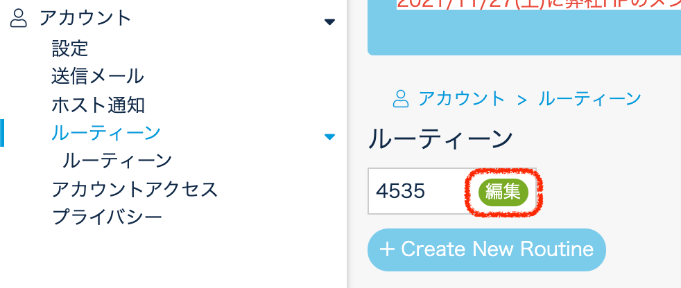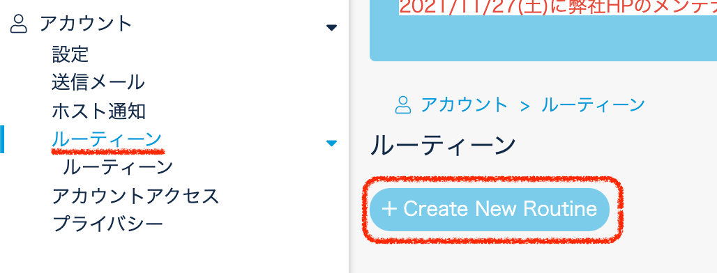 1.設定 > アカウント > ルーティーンで、『Create New Routine』をクリックします。