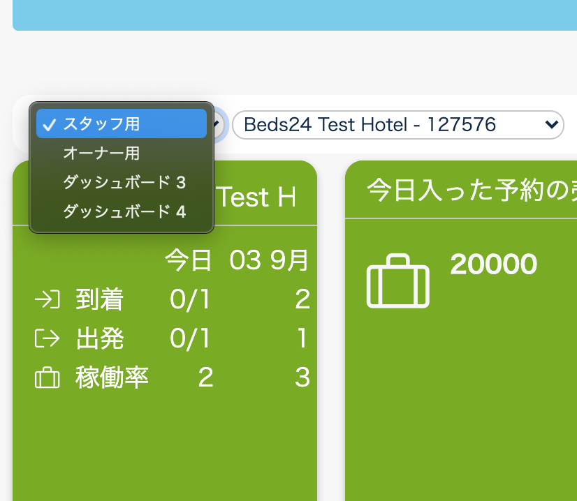 画面左側のプルダウンから、ダッシュボードの切り替えをします。