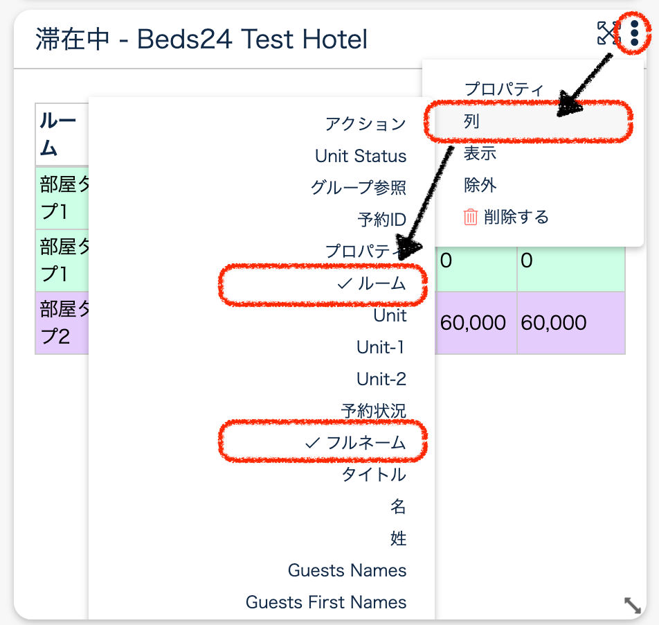 項目の種類は必要に応じて、表示/非表示が可能です。
