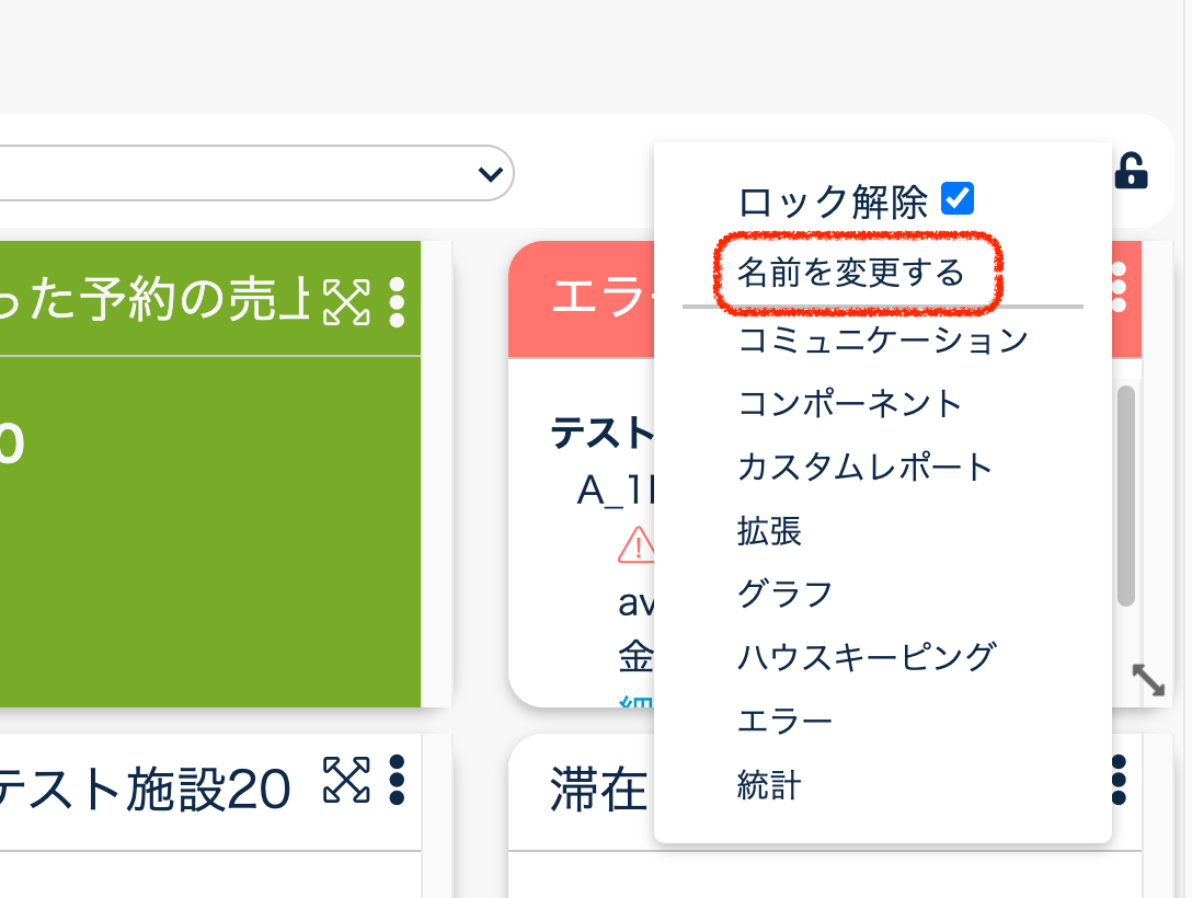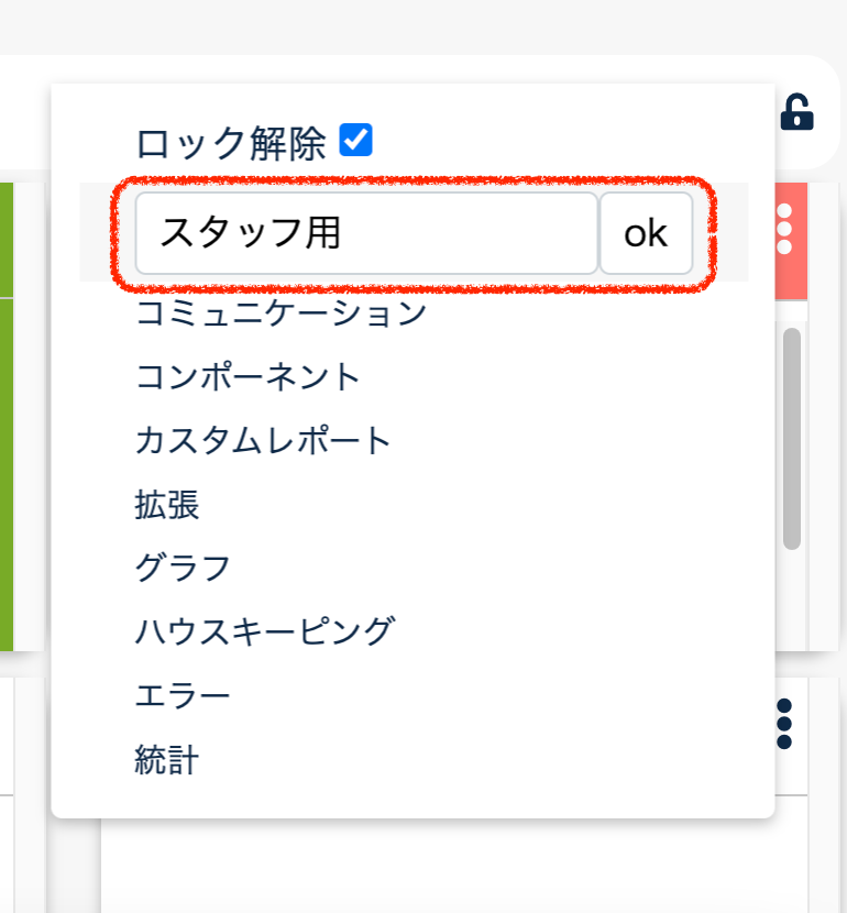 1.「ロック解除」の下のメニューから、追加したい項目をクリックします。
