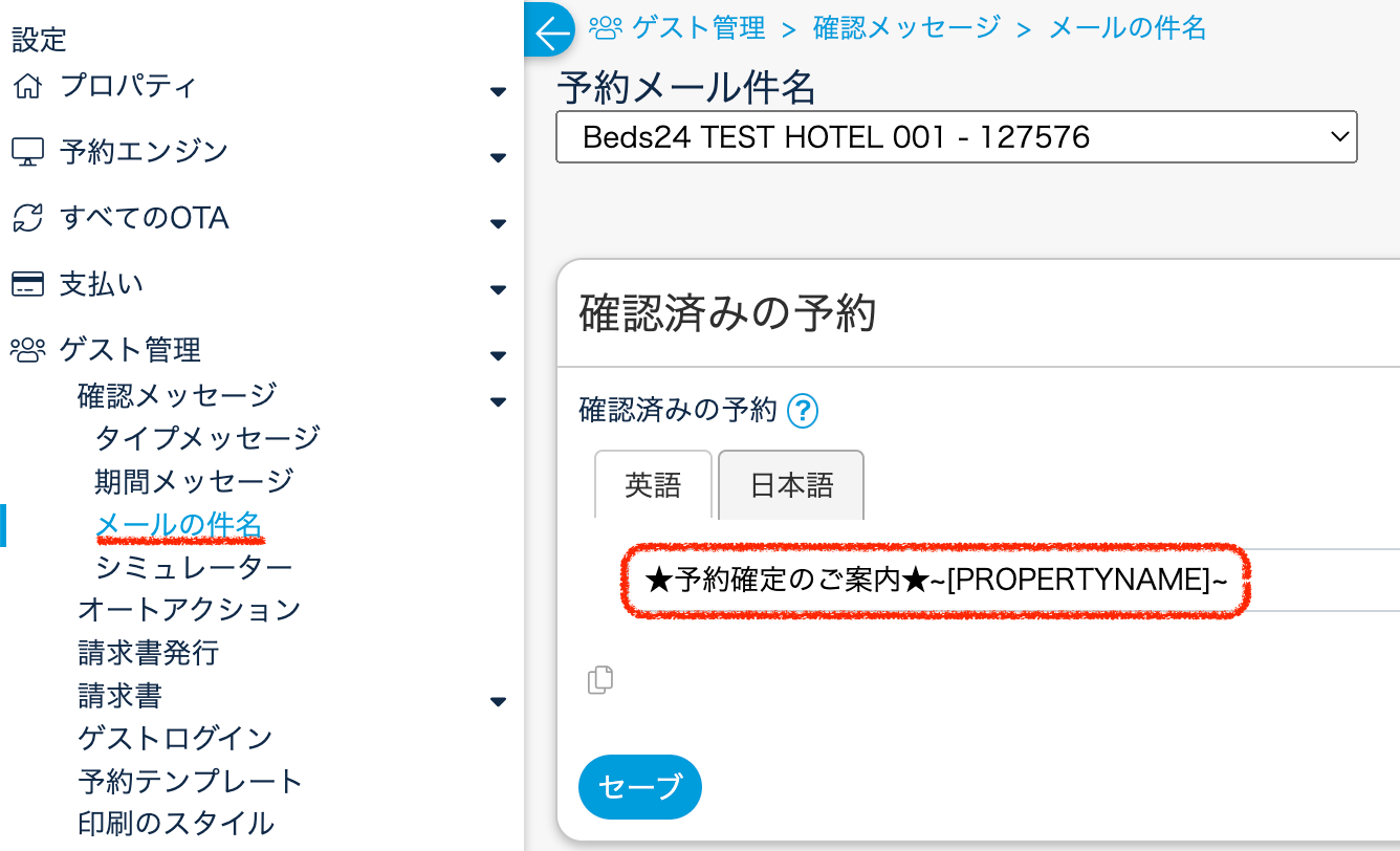 Beds24は全ての自動メールの件名をカスタマイズできます。