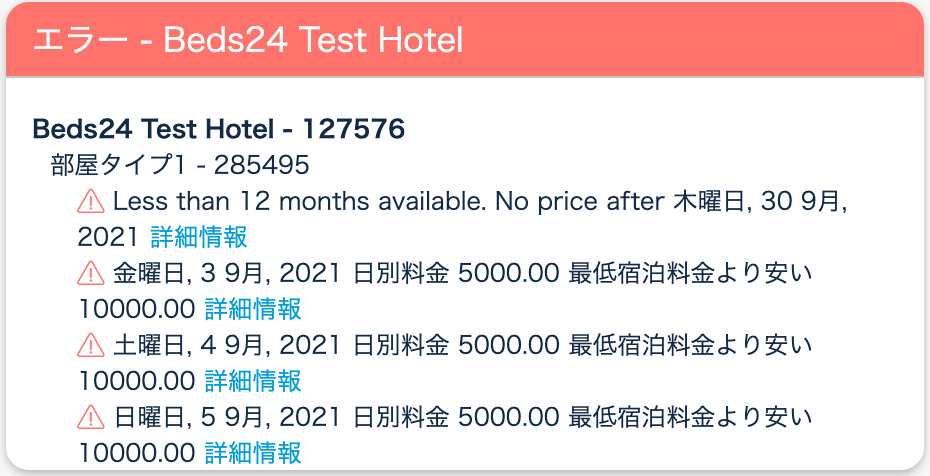 OTAとの連動エラーの有無や、安すぎる価格が入力されていないかなどを確認します。