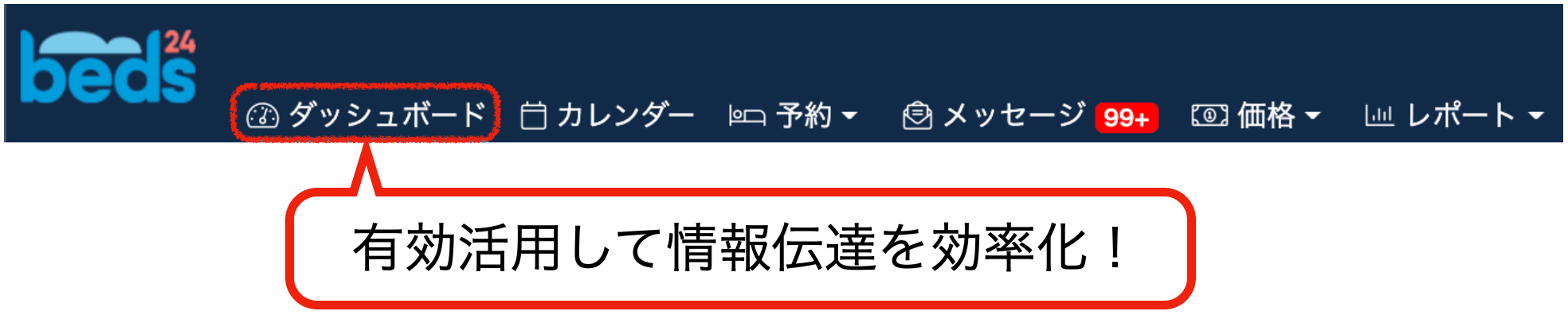 Beds24のダッシュボードを活用して、情報伝達を効率化しましょう。