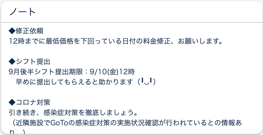 メモやLINEなどでの引き継ぎ作業の手間が、大幅に削減されます。