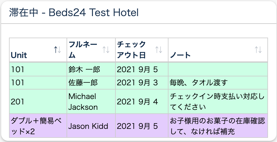 ⑤現在宿泊中のゲスト一覧「滞在中」