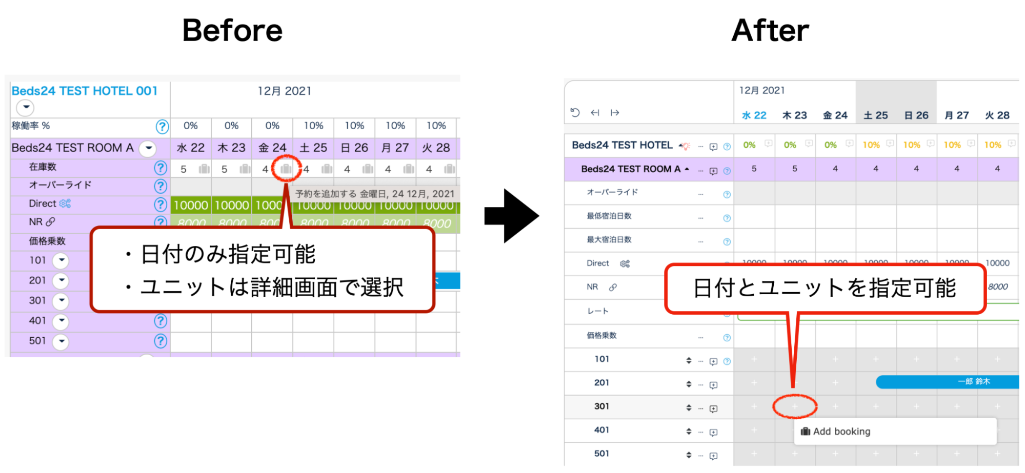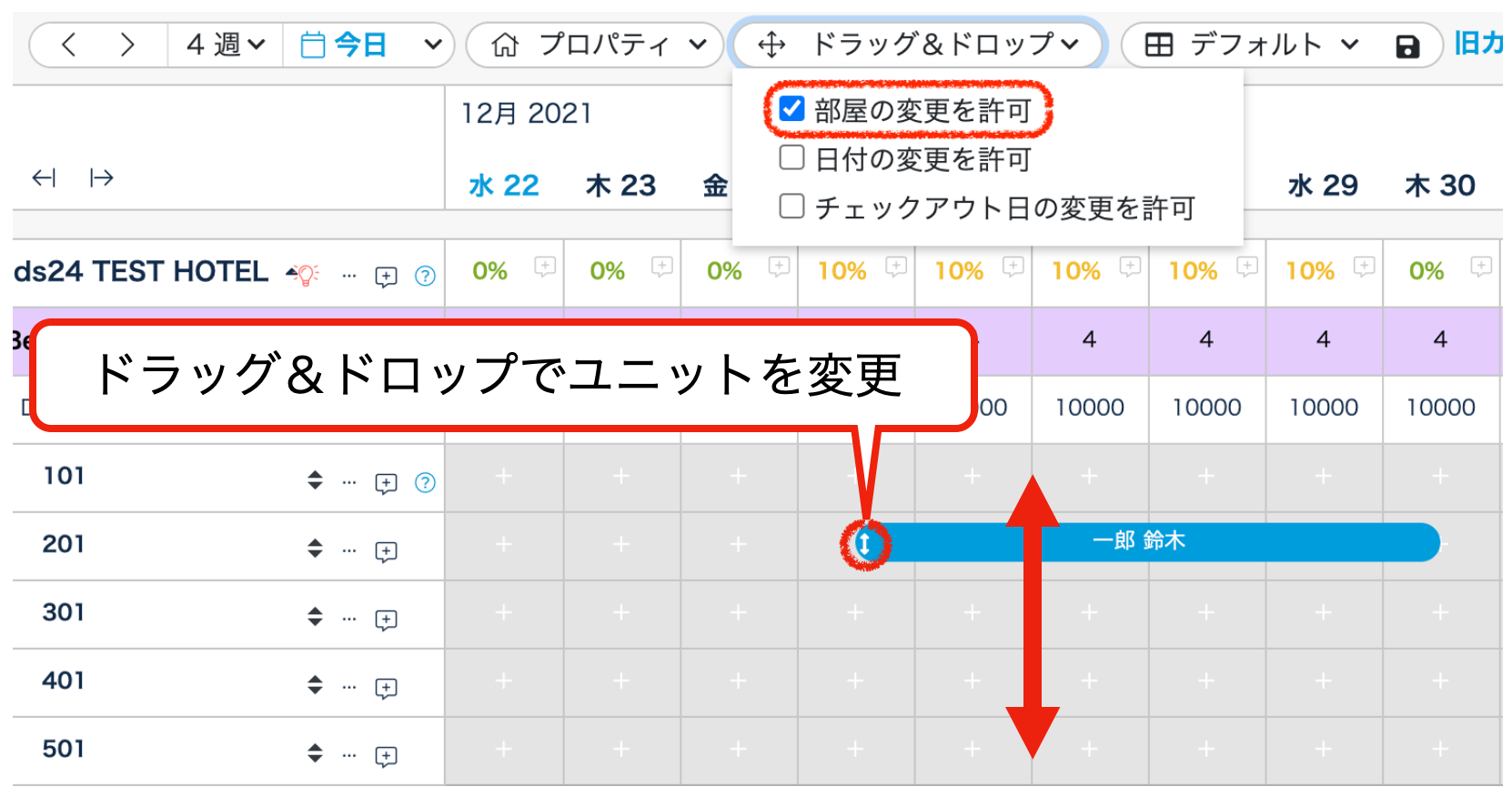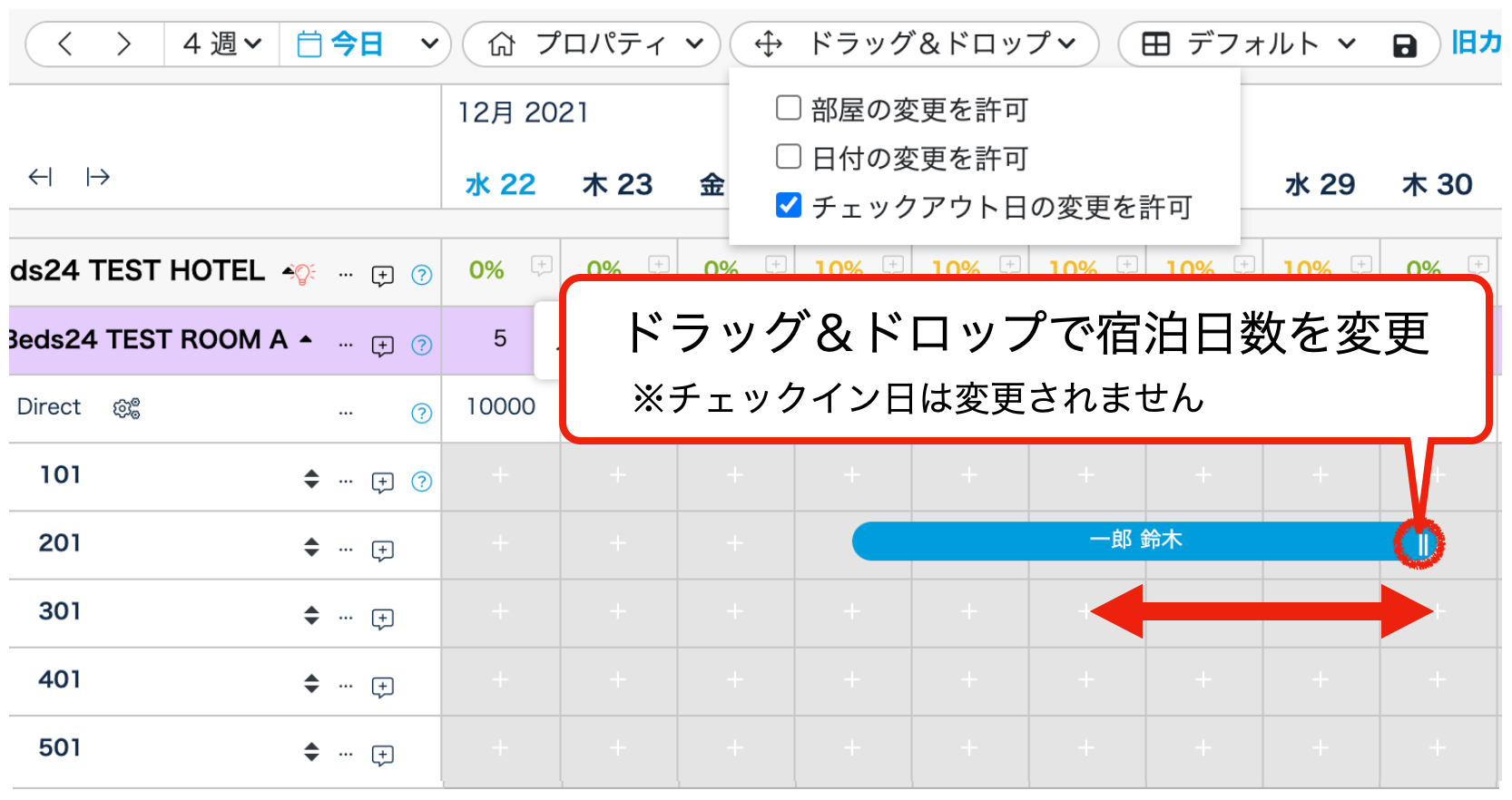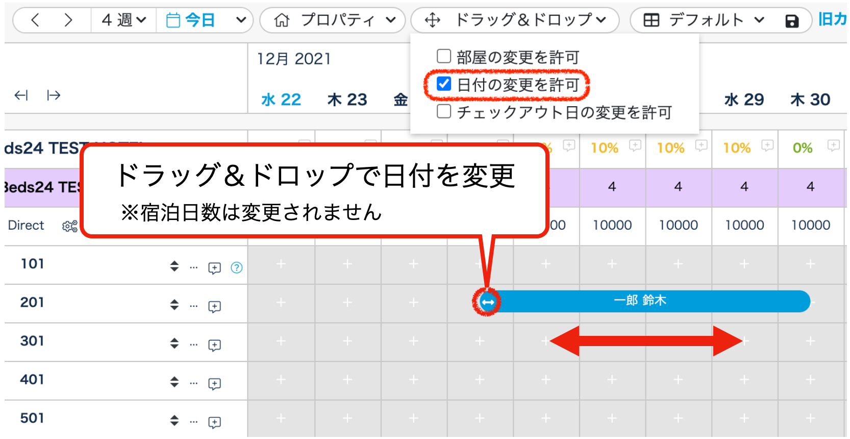 2.予約をドラッグ&ドロップ+宿泊数調整