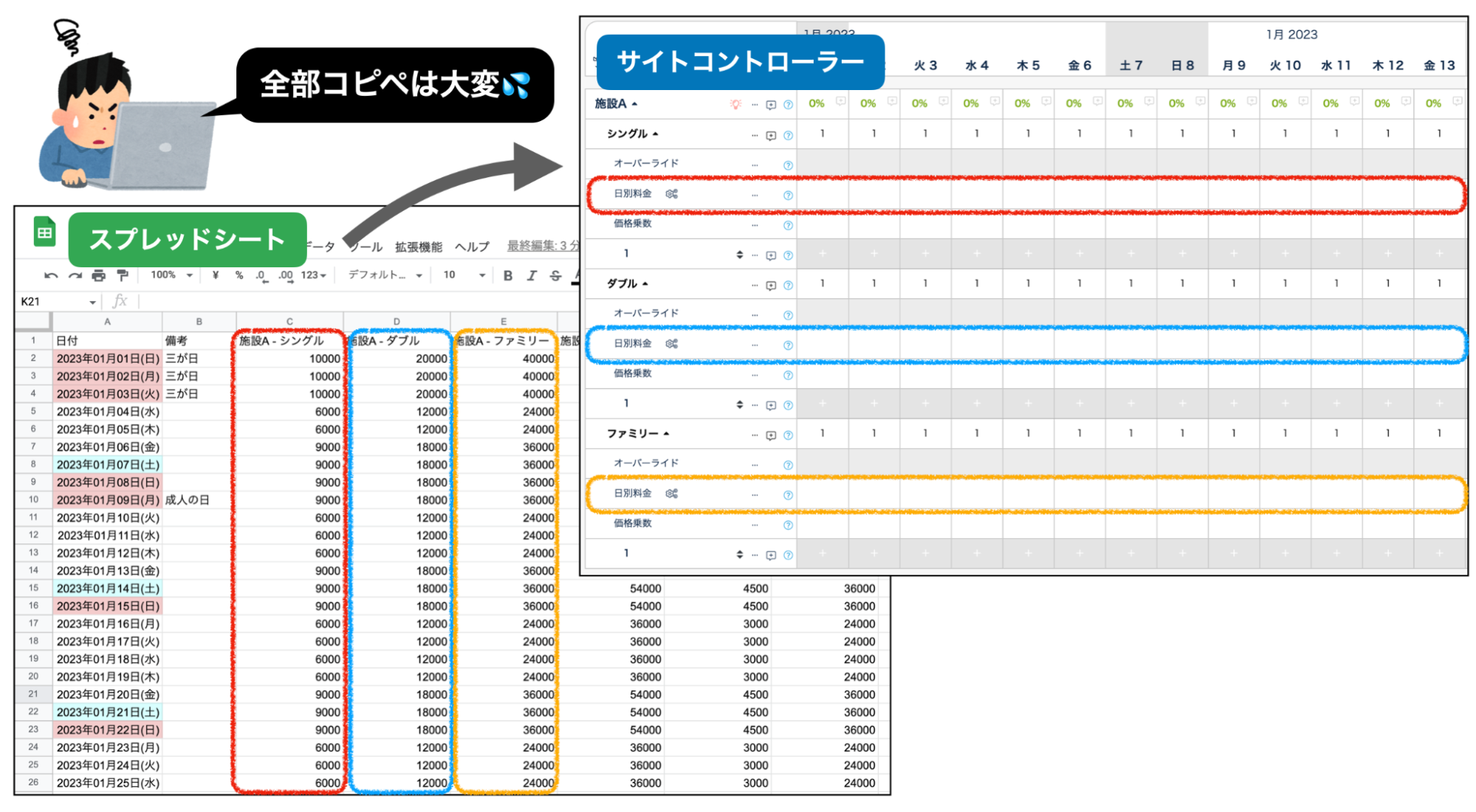 CSVで、Beds24に販売価格を一括でアップロードしましょう。