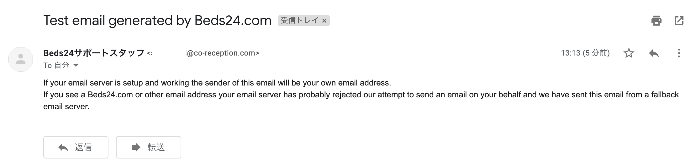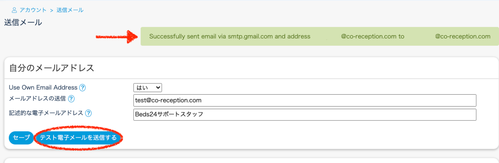 ※テストメールは、Beds24に登録されているメールアドレス宛に送信されます。
