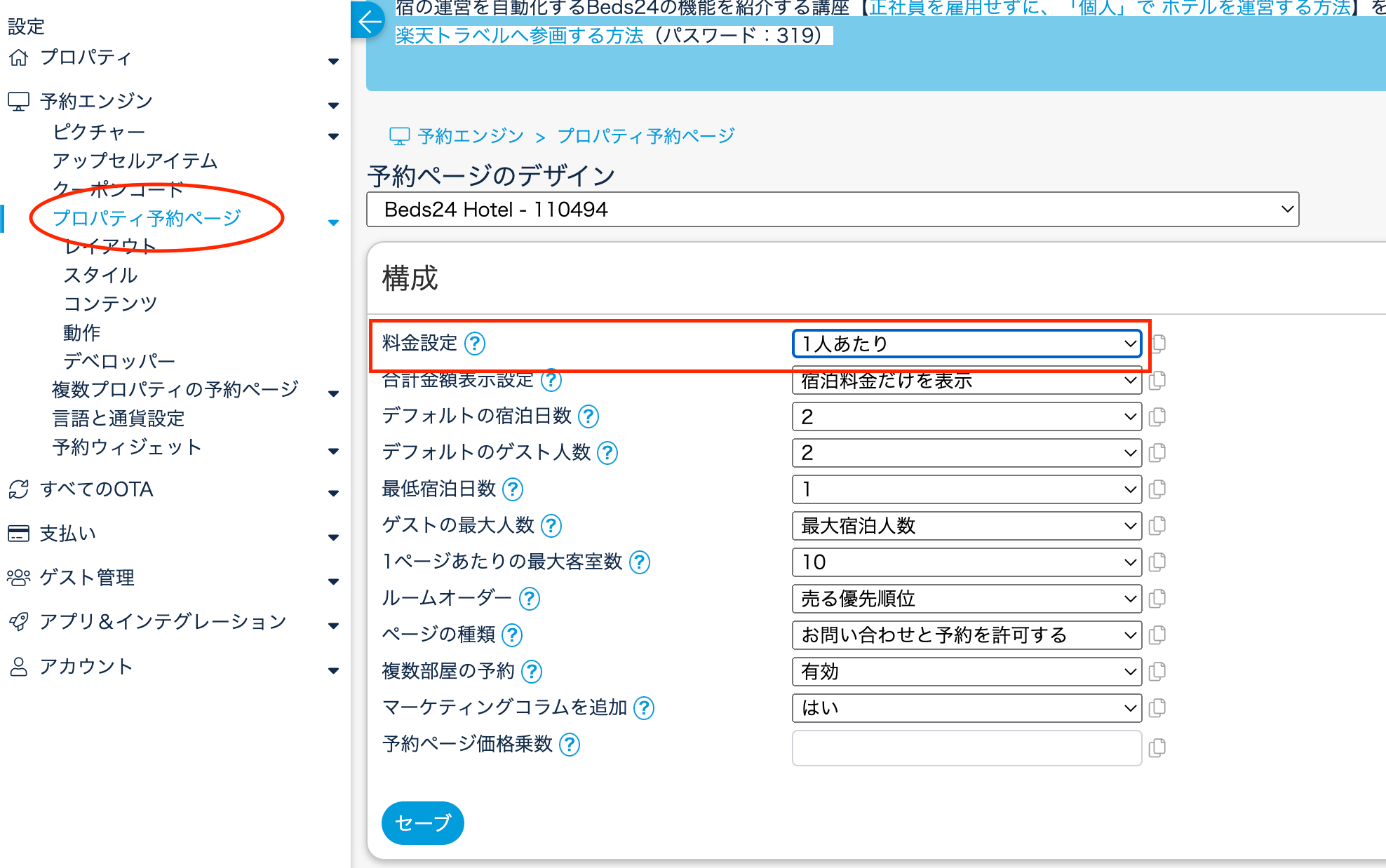 上記ご了承頂き、自社サイトを経由して全国旅行支援の受け入れが可能なご施設様のみ、以下をご覧いただきBeds24予約エンジン上で設定を行ってください。