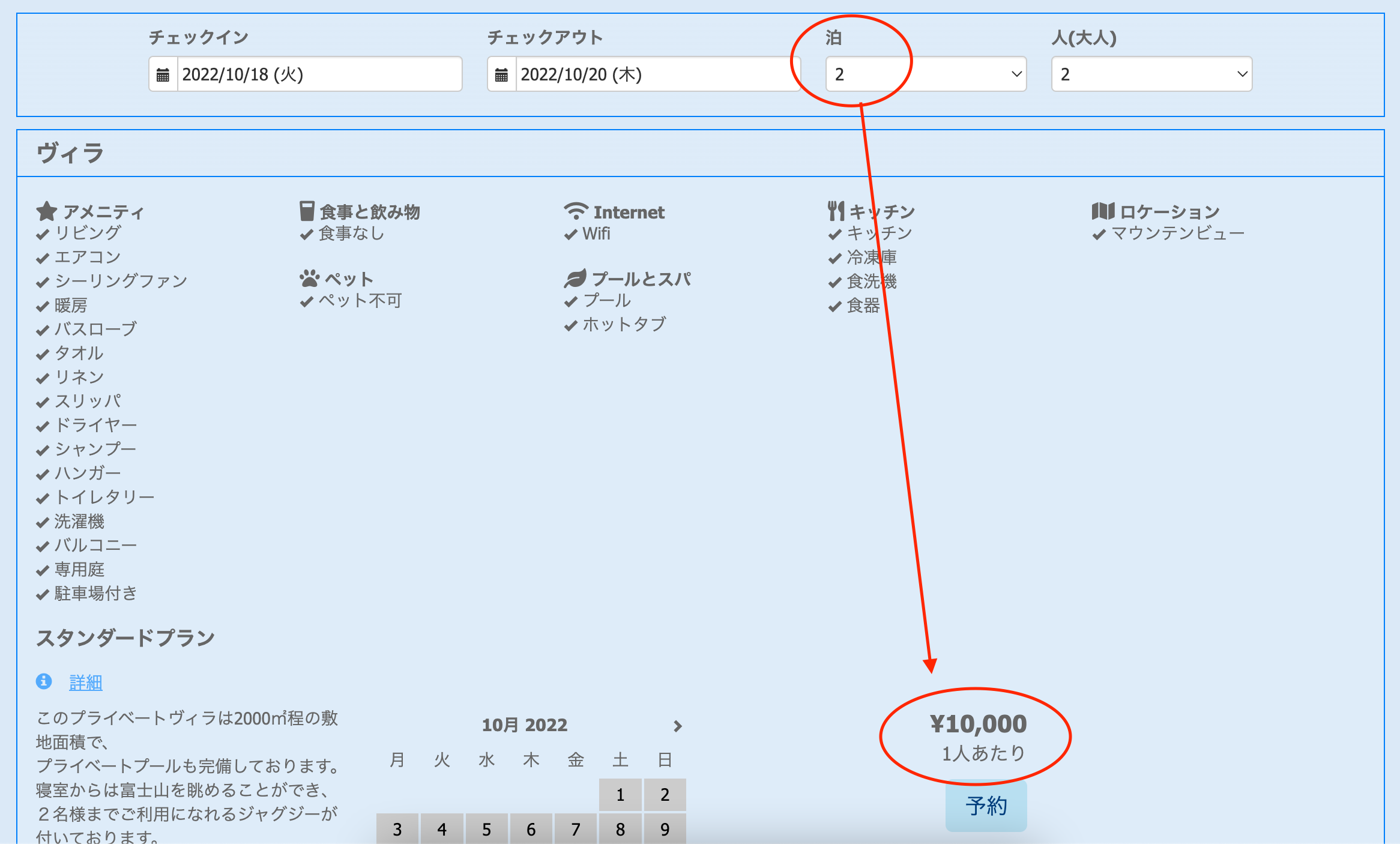 1室当たりの場合は1名1泊の金額がわかりにくいですが、1人あたりにすると、1名当たり×宿泊日数の金額表示になるため、計算しやすいかと思われます。