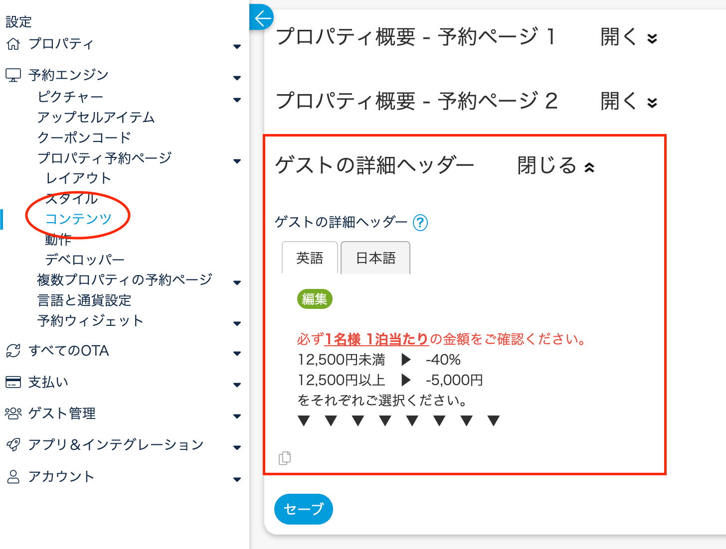 【設定 > 予約エンジン> プロパティ予約ページ > コンテンツ > ゲストの詳細ヘッダー】